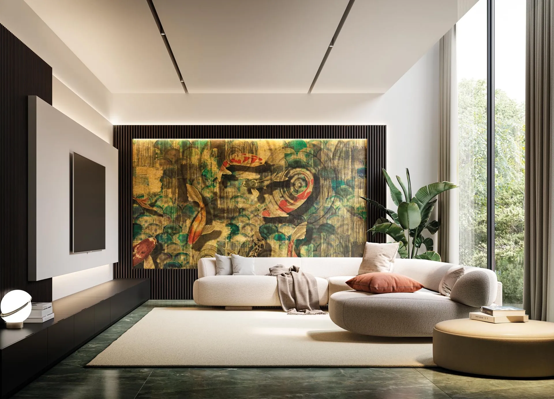 Presso Battaglia Arredamenti S.r.l. a Saponara, ti aspetta la magnifica carta da parati Gold Fish di Instabilelab, un'autentica opera d'arte per le tue pareti. Questa creazione esclusiva, parte della prestigiosa collezione 24K, incanta con un suggestivo lago dorato e pesci iridescenti, un vero spettacolo visivo. Disponibile nei lussuosi materiali Prestige Gold e Prestige Rose Gold, si distingue per la sua laminazione in foil goffrata che amplifica le grafiche con riflessi cangianti e una luminosità senza pari. La sua grafica personalizzabile la rende perfetta per arricchire con eleganza e un tocco onirico qualsiasi ambiente, dal soggiorno alla camera da letto, fino all'ingresso. Vieni a scoprire di persona perché i nostri clienti di Saponara e dell'intera provincia scelgono le soluzioni di design che offriamo, garantendo stile e qualità per ogni ambiente.