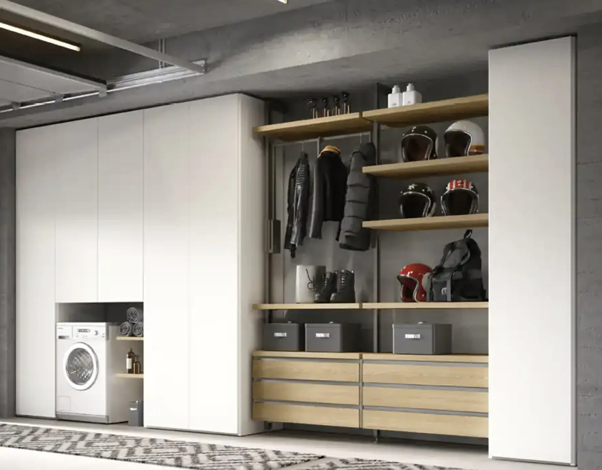 La cabina armadio Cabina armadio Virgo V326 di Moretti Compact Giorno Notte rappresenta una soluzione d'arredo innovativa. Questa specifica configurazione si distingue per il suo posizionamento unico 'tra due armadi battenti'. Progettata per sfruttare al meglio gli spazi, estendendosi dal pavimento al soffitto, offre un'organizzazione impeccabile del guardaroba. Caratterizzata da montanti in tubolare di alluminio, questa struttura si integra perfettamente nell'ambiente, potendo essere fissati a muro o a soffitto tramite un puntale. Il risultato è un ambiente spazioso, ordinato e facilmente accessibile per organizzare il guardaroba. La sua notevole versatilità consente di personalizzare la cabina con diverse larghezze, pannellature e accessori interni, adattandosi a ogni stile e necessità. È inoltre posizionabile anche a centro stanza per dividere gli ambienti, offrendo nuove prospettive di design. Sebbene le dimensioni esatte possano variare, il sistema è altamente personalizzabile. La meticolosa attenzione ai dettagli costruttivi e la scelta di materiali avanzati garantiscono un prodotto di altissimo livello, pensato per durare nel tempo.