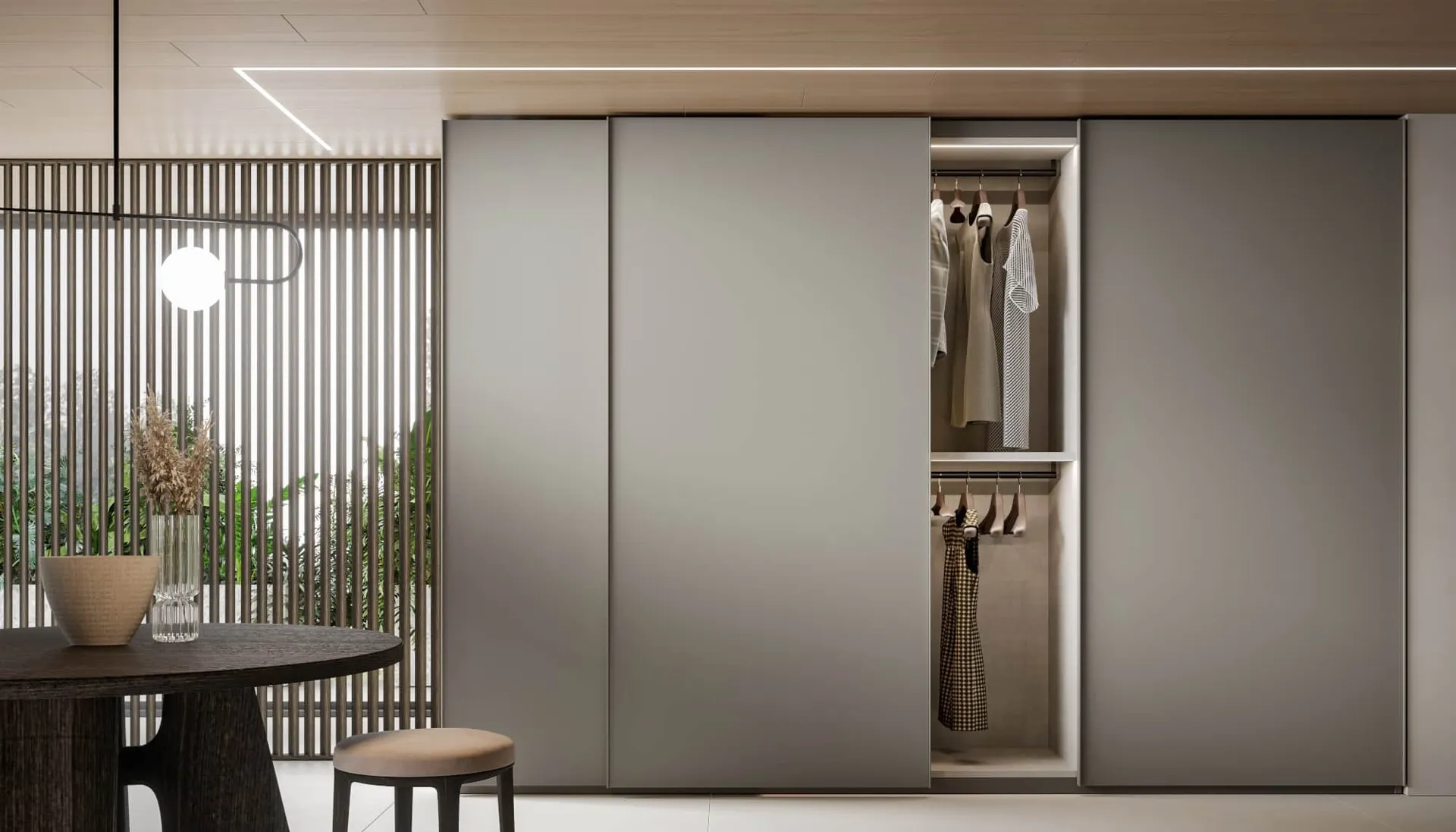 L'Armadio Anta Liscia, elemento distintivo del Sistema Domino di Veneran, si caratterizza per il suo design essenziale e le sue funzionalità avanzate. Le linee pulite, la simmetria accurata e l'equilibrio della superficie definiscono un'estetica che si integra armoniosamente in qualsiasi ambiente contemporaneo, offrendo soluzioni d'arredo di notevole originalità. Questo sistema di armadi rappresenta la sintesi di un'evoluzione stilistica che dura da oltre cinquant'anni, unendo buon gusto e scelte progettuali precise. La produzione si avvale di tecnologie all'avanguardia, affiancate da una sapiente manualità artigianale, per garantire un design di alta qualità e una cura meticolosa in ogni particolare. Tutti i prodotti Veneran sono orgogliosamente Made in Italy, un'espressione autentica della tradizione e dell'eccellenza manifatturiera italiana. Dettagli tecnici specifici e un'ampia gamma di finiture sono disponibili per personalizzare ogni progetto. La durabilità e l'eccellenza stilistica sono al centro della progettazione, assicurando soluzioni d'arredo che perdurano nel tempo e si adattano alle esigenze abitative moderne.