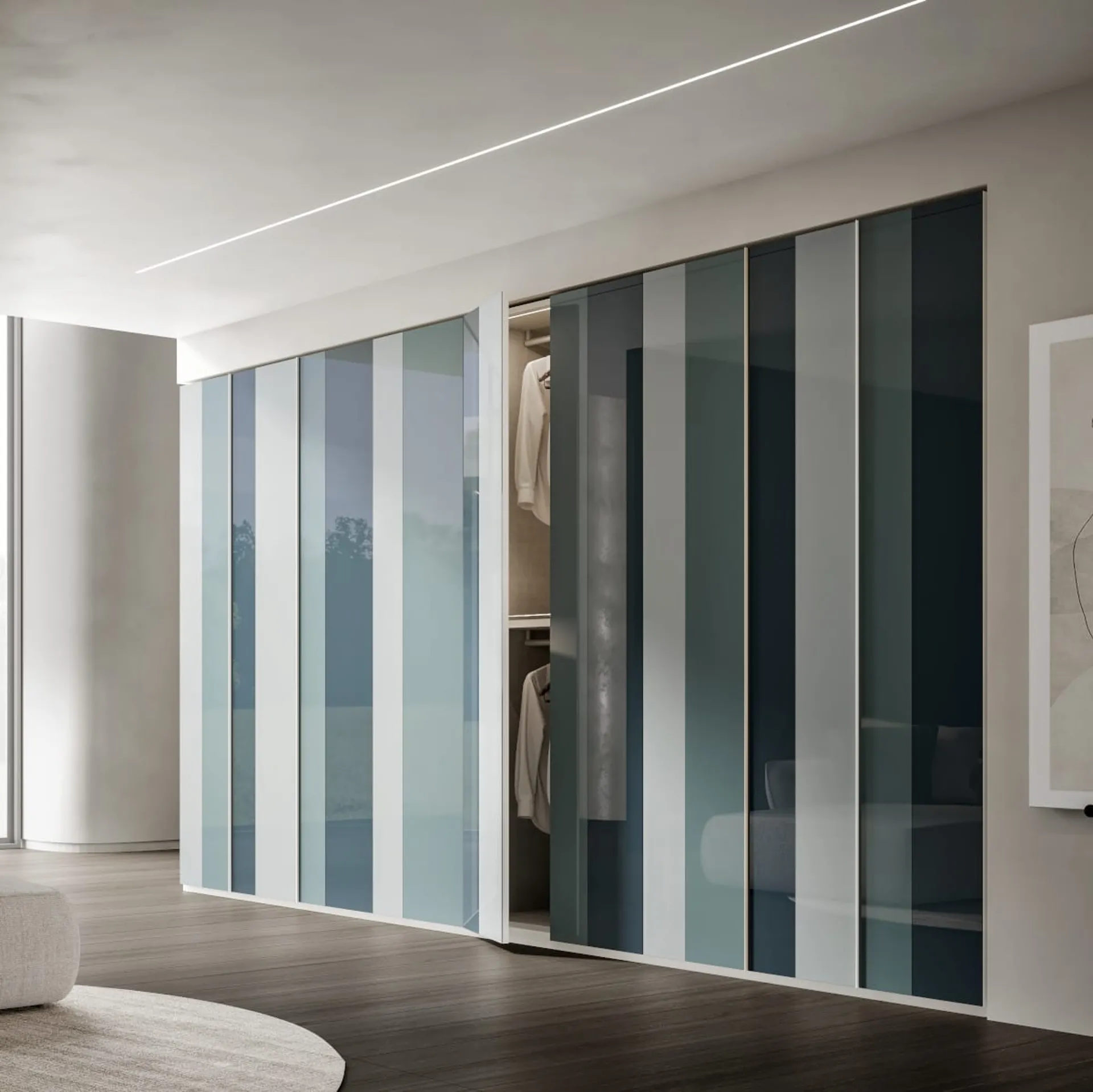 Contattaci e scopri di più sulla nostra collezione di Arredamento Casa: potrai completare la camera da letto grazie a una ricca varietà di mobili contenitori design, come l'armadio in vetro in foto. Armadio con ante battenti Vela di Veneran: compila il form per ricevere info di ogni genere e consigli per ammobiliare la camera che hai sempre desiderato. Gli Armadi a muro con ante battenti sono componenti immancabili in camera, per renderla arredata con gusto, funzionale e completa di tutto.