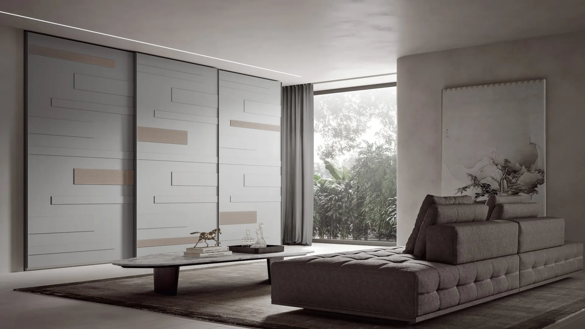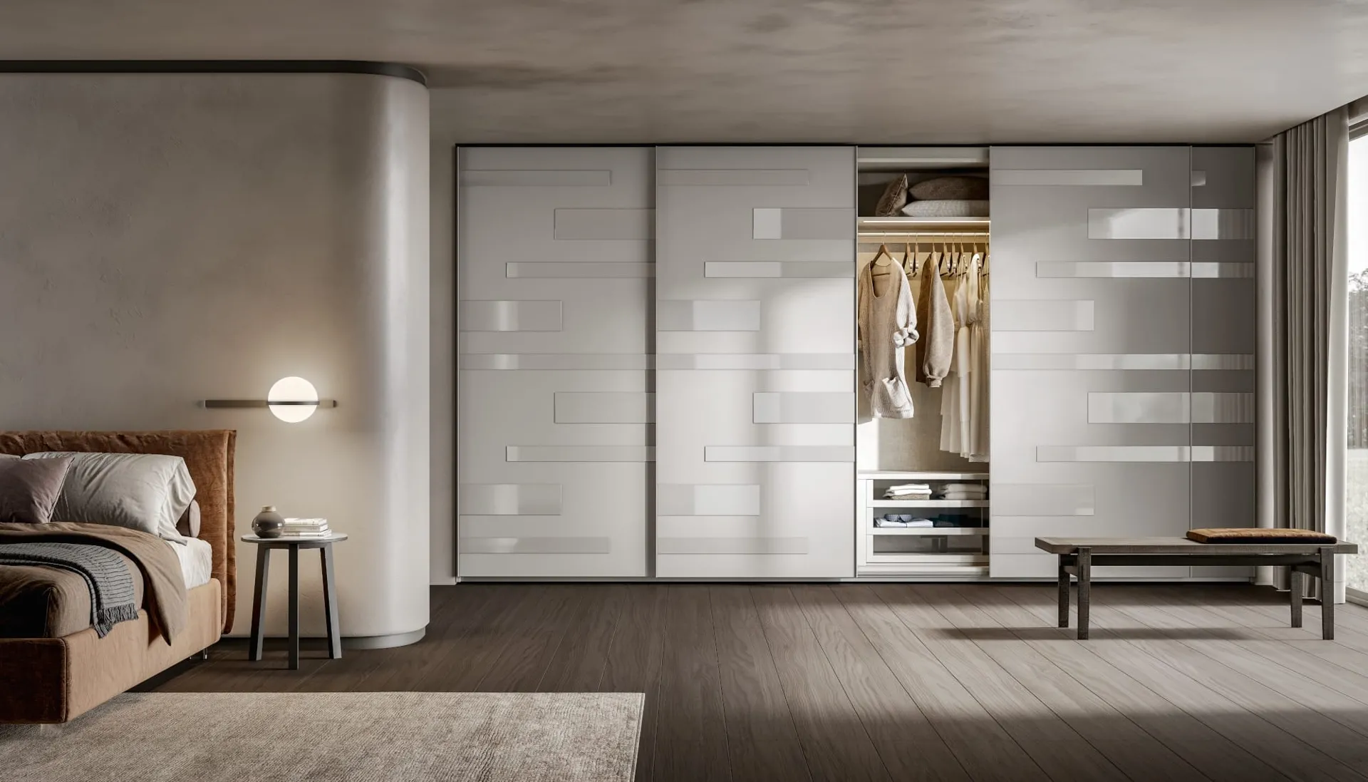 Armadio con ante scorrevoli Segmenta di Veneran: se vuoi arredatori professionisti per preventivi e progetti, realizza con noi la casa che hai sempre desiderato. Una ampia disponibilità di arredi in laccato opaco come questo guardaroba con ante scorrevoli nella fotografia. Sicurezza e comfort sono gli ingredienti che, insieme a una buona resa estetica, distinguono tutti gli Armadi a muro design dell'azienda Veneran. Armadio con ante scorrevoli Segmenta di Veneran in laccato opaco: in una ricca gamma di mobili ed elementi accessori, questo modello ti permetterà di completare la tua camera da letto come l'hai sempre sognata. Farci visita significa vedere dal vivo diverse soluzioni del noto e rinomato brand, sempre di alto contenuto estetico.