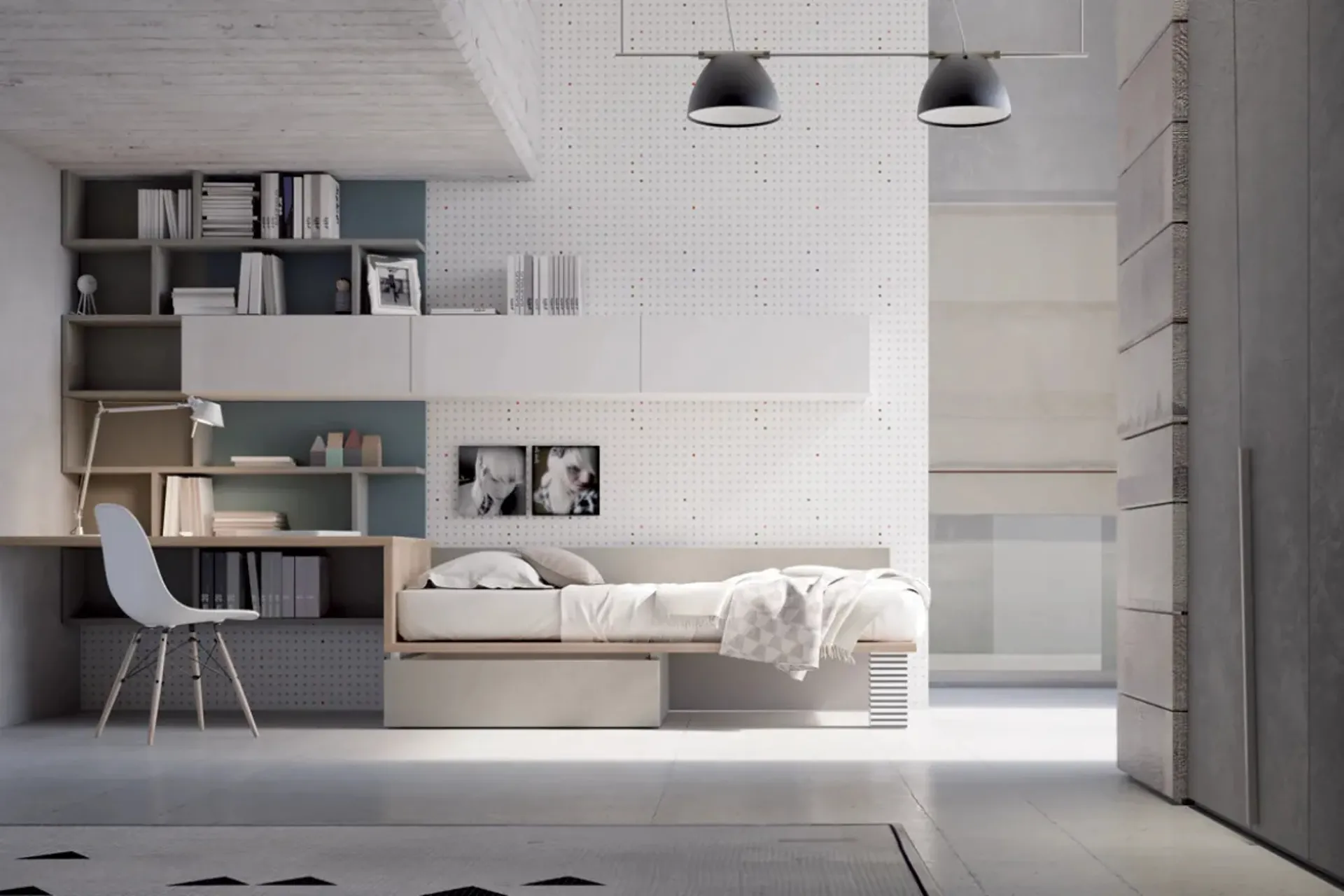 Per progettare perfettamente le Camerette, Dielle presenta progetti articolati e polifunzionali: sono svariate le attività che i tuoi figli svolgono lì. Questa proposta con finitura in laccato opaco, tra quelle componibili per ragazzi di Dielle, soddisfa le aspettative degli adulti e i gusti dei giovani. Il conosciuto marchio realizza svariate soluzioni moderne, così la cameretta diventa un ambiente dove i piccoli avranno la possibilità di crescere e riposare. Con la Cameretta componibile C28 Letti a terra di Dielle renderai la stanza dei tuoi figli un luogo davvero confortevole e sicuro, che li seguirà mentre crescono.