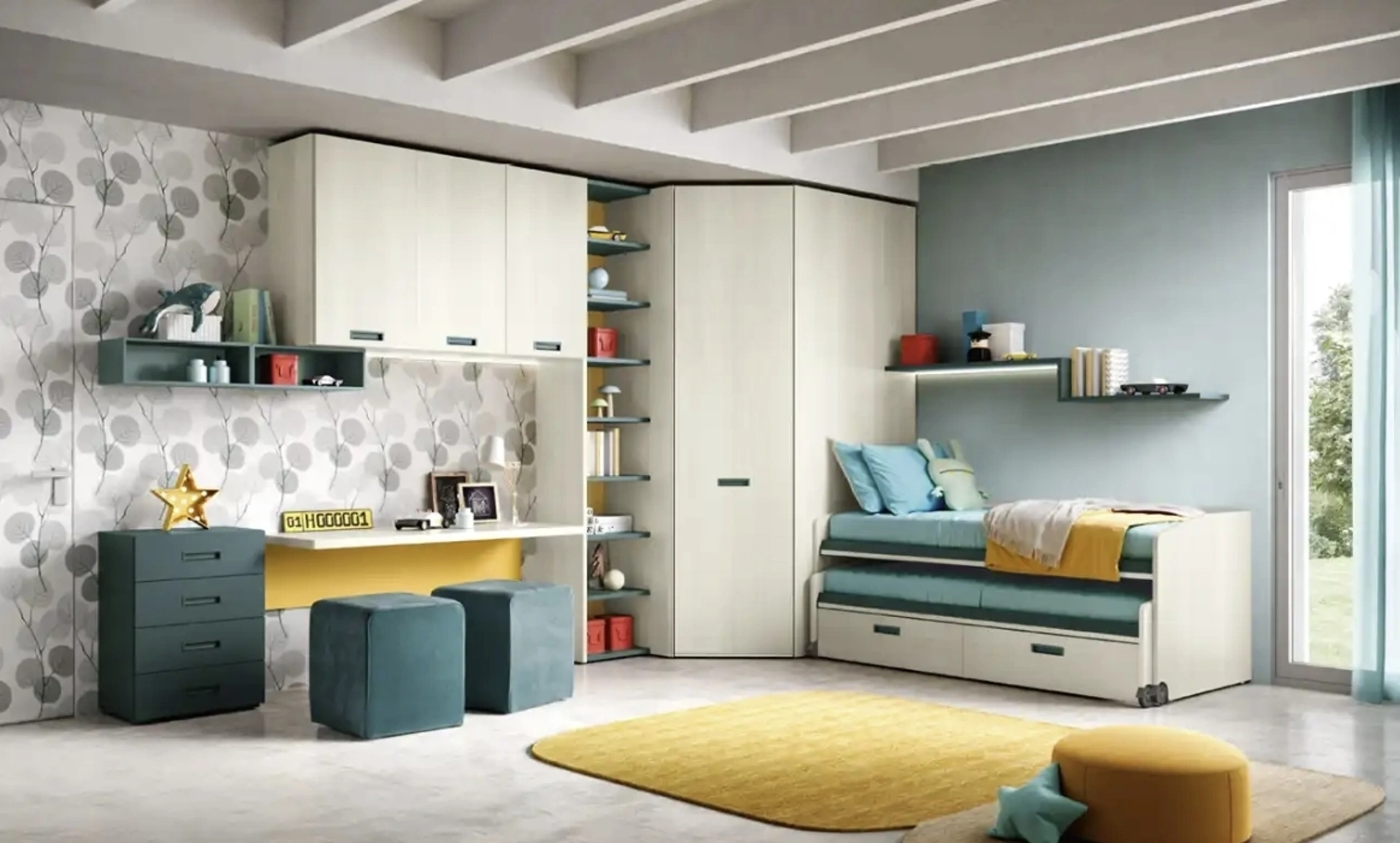 Le Camerette dei nostri bambini sono il luogo in cui passeranno i loro primi anni giocando e sognando, quindi è essenziale che lo spazio sia funzionale. Presentiamo nel nostro showroom molteplici Camerette con letti scorrevoli moderne per bambini del brand, ideali per accompagnarli durante la loro crescita. Nel nostro punto vendita ti guidiamo dalla scelta dei mobili per la camera alla progettazione del luogo nel quale i tuoi bambini cresceranno, giocando e sognando. Con la Cameretta K105 Moretti Compact Camerette in melaminico ti garantirai un perfetto mix di funzionalità ed ergonomia, ideale per la stanza dei tuoi bambini.