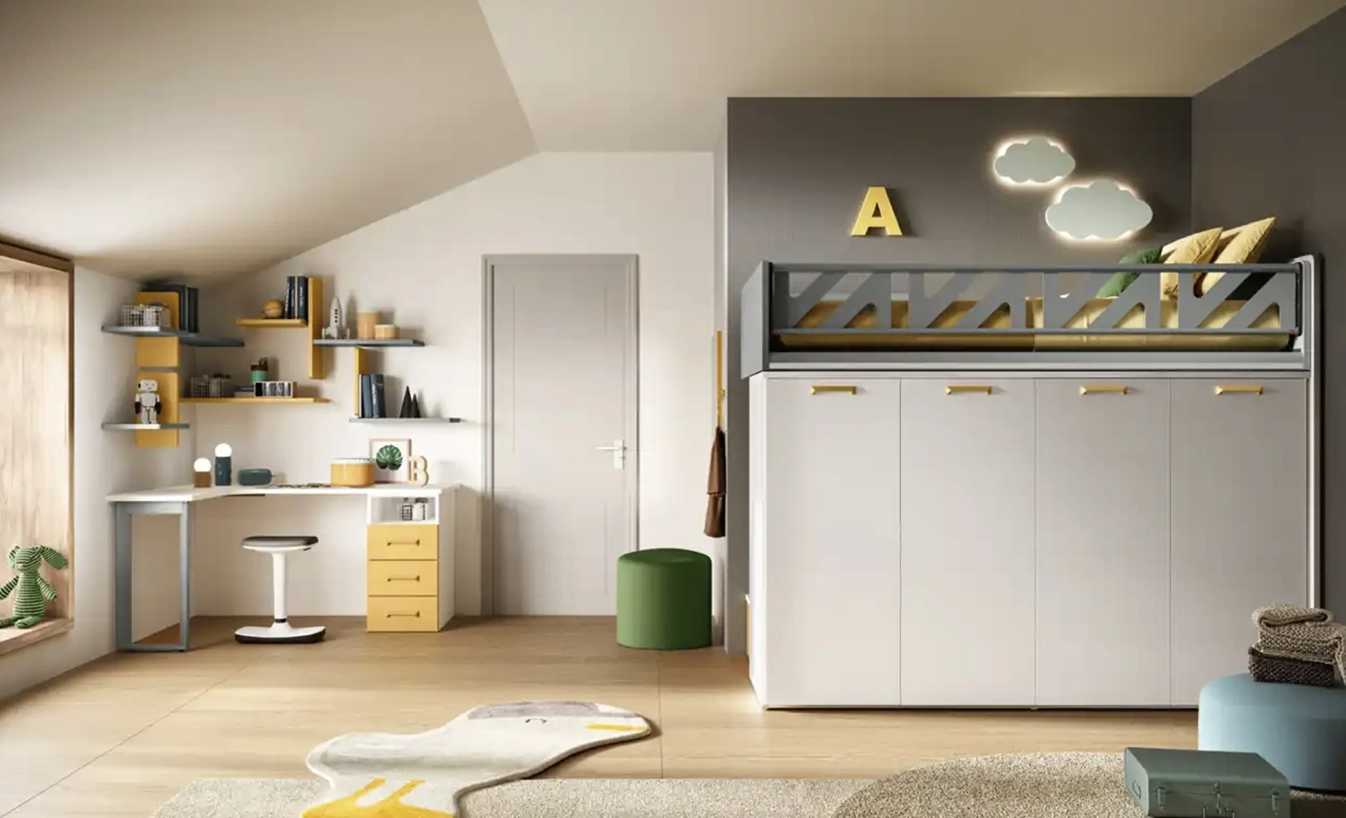 Le Camerette dei nostri bambini sono l'ambiente in cui diventeranno grandi divertendosi e sognando, perciò è essenziale che lo spazio sia funzionale. Con la Cameretta K109 di Moretti Compact Camerette in melaminico ti garantirai un perfetto mix di funzionalità ed ergonomia, ideale per la stanza dei tuoi bambini. Proponiamo in negozio molteplici Camerette a soppalco moderne per bambini del marchio, ideali per seguirli durante la loro crescita. I nostri bambini trascorrono parecchie ore delle loro giornate nelle loro camere da letto: rendile adatte per dedicarsi alla scuola, divertirsi e rilassarsi tutti i giorni.