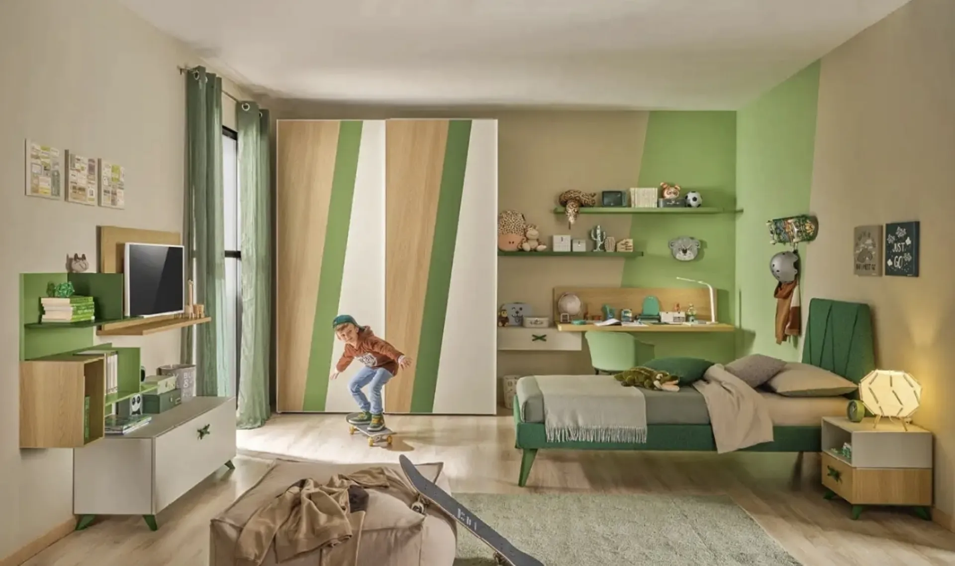 Questa soluzione in melaminico ultima al meglio le doti pratiche e il valore estetico della camaretta, in quanto è capace di unire funzionalità ed ergonomia. Nella progettazione della stanza dei bambini affidati a noi: in negozio presentiamo tutte le più belle composizioni moderne per la loro camera. Moretti Compact Camerette offre una ricca gamma di accessori da abbinare su misura: troverai letto, guardaroba, tavolo da lavoro, sedie e librerie. Porta estetica e cromie vivaci nella stanza dedicata ai più piccoli con questa proposta, una delle Camerette componibili per bambini di Moretti Compact Camerette. Se cerchi idee creative per progettare al meglio la stanza dei tuoi bambini, ti presentiamo la Cameretta componibile KC320 di Moretti Compact con finitura in melaminico.