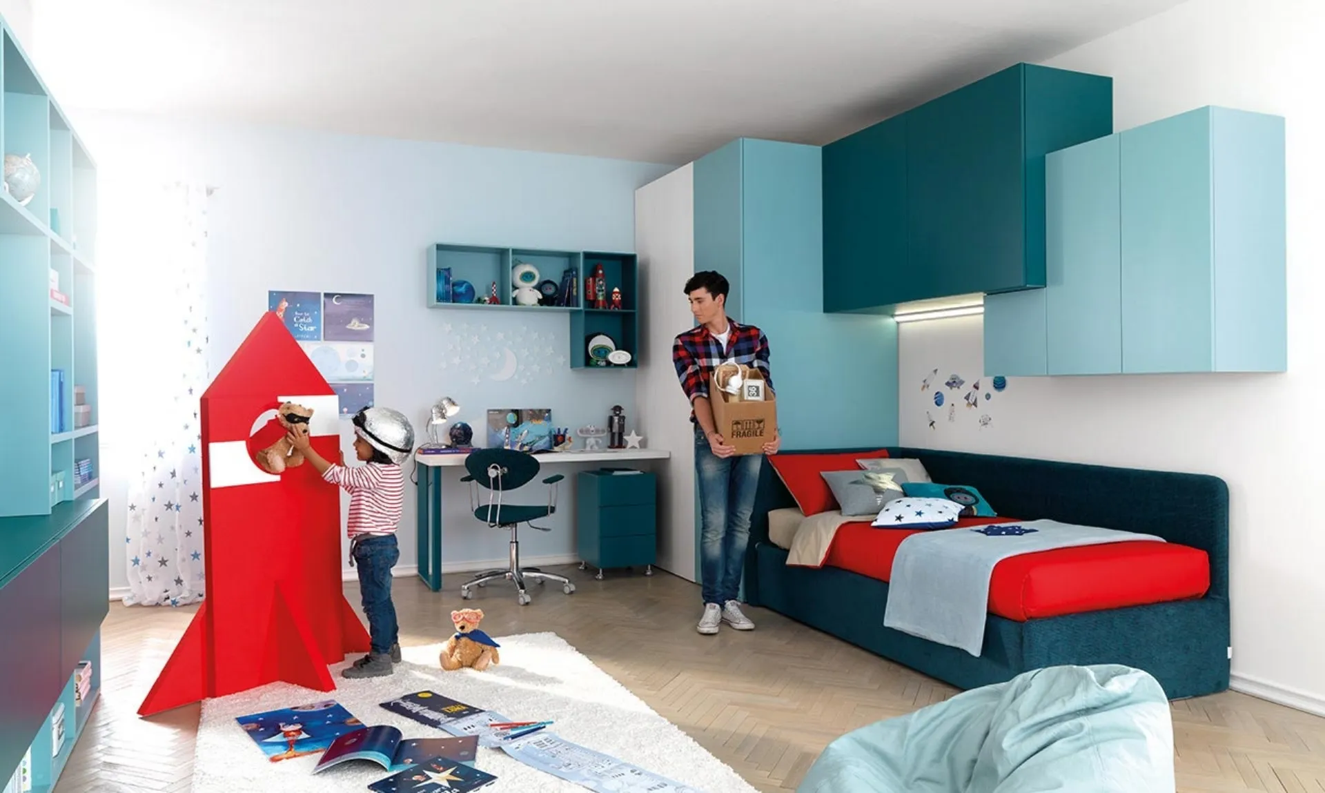Se la stanza ha misure ridotte, sono diverse le soluzioni che Moretti Compact Camerette presenta, sempre capaci di congiungere ergonomia e sicurezza. Materiali pregiati e pitture atossiche caratterizzano le proposte del brand, tra cui troverai anche quelle moderne a ponte ideali per te. Gli elementi accessori disponibili per le Camerette a ponte di Moretti Compact Camerette sono sempre personalizzabili, per evitare qualsiasi difficoltà di spazio e praticità. Le Camerette a ponte per ragazzi del rinomato brand sono disponibili in molteplici versioni, che rispondono sempre alle richieste dei bambini. Scopri nel nostro showroom la Cameretta a ponte KC401 di Moretti Compact in laccato opaco: si adatta a creare perfettamente un ambiente accogliente, bello e ben organizzato.