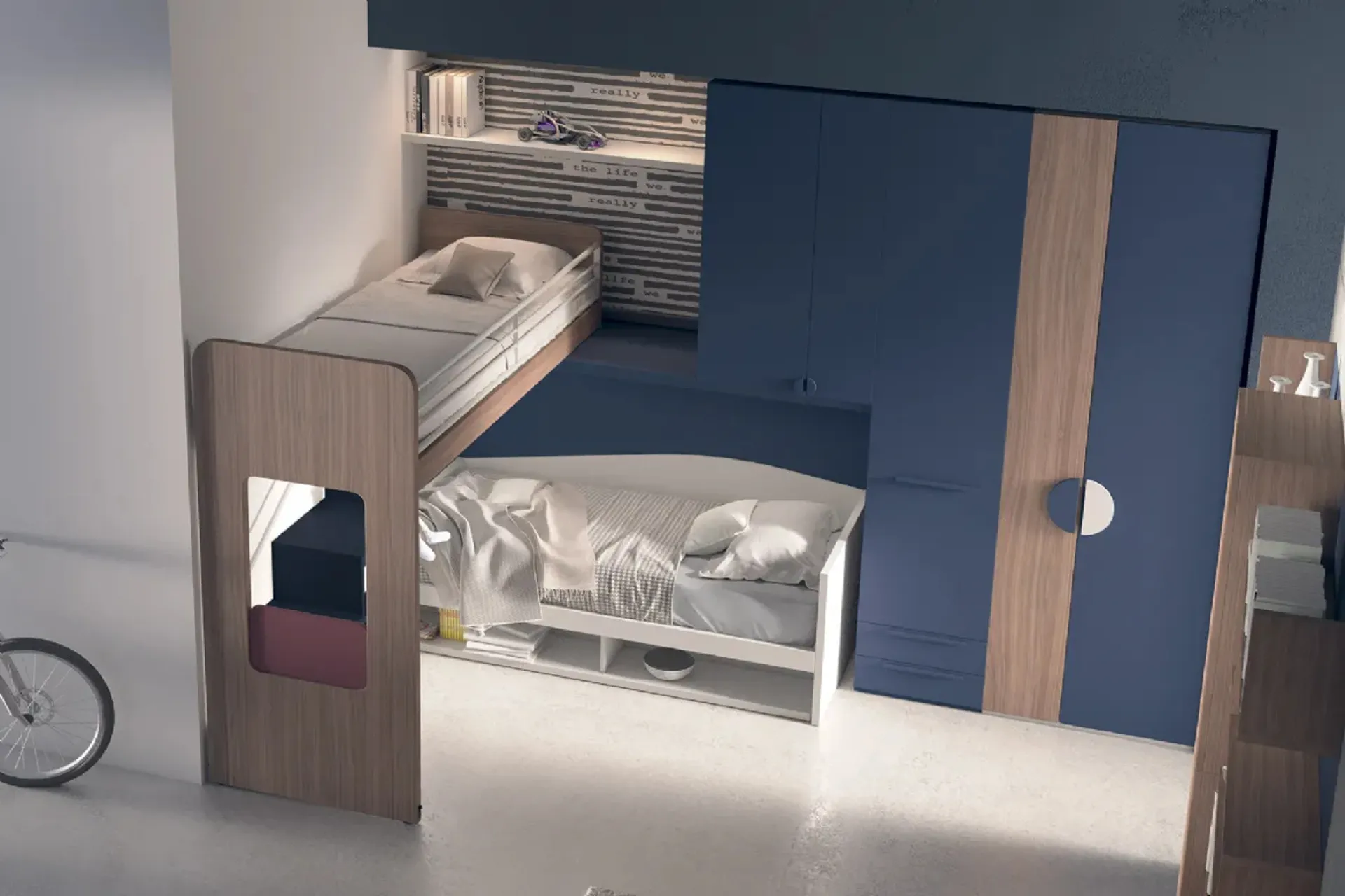 La Cameretta S08 di Dielle, con il suo innovativo sistema 'Castelponte', rappresenta una soluzione avanzata per ottimizzare gli spazi in ambienti condivisi. Questo design compatto integra sapientemente un letto a castello e una struttura a ponte, massimizzando la funzionalità in metrature ridotte. La configurazione consente l'alloggio di due letti, uno a livello pavimento e uno rialzato, sfruttando verticalmente lo spazio disponibile. Include inoltre una colonna armadio e un ponte, garantendo capienza e ordine. La personalizzazione è garantita da una vasta gamma di finiture e complementi, permettendo di adattare l'estetica alle esigenze progettuali. Questo sistema è frutto di un'accurata ricerca ingegneristica volta a garantire un'eccellente durabilità e un elevato standard funzionale.