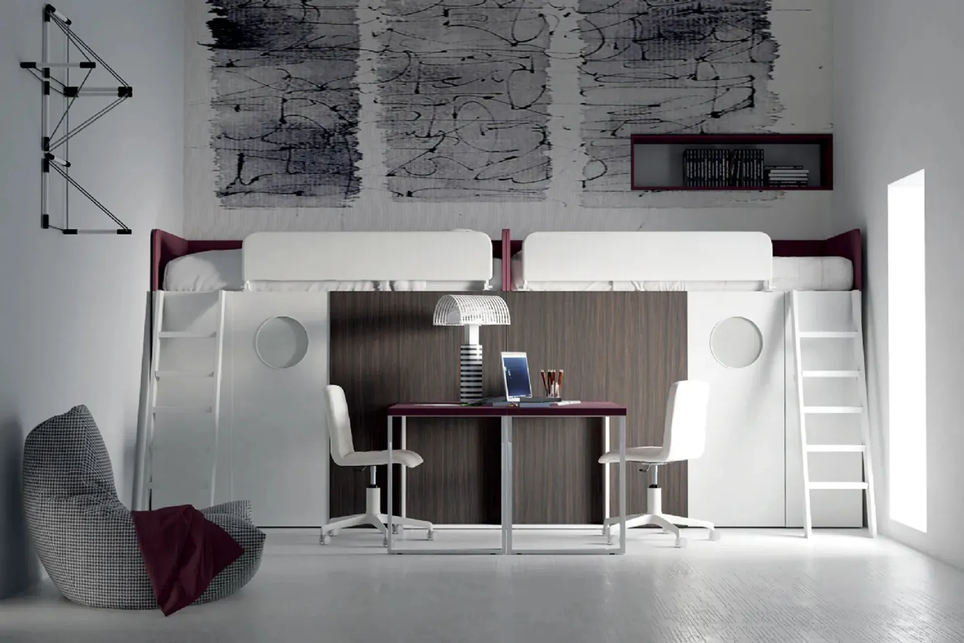 Il sistema letto a soppalco S15 A di Dielle rappresenta una soluzione d'arredo altamente ingegnerizzata, studiata per massimizzare la funzionalità in ambienti compatti. Questo innovativo progetto integra armoniosamente un'area riposo, un vano contenitore attrezzato e una cabina armadio, con accesso agevolato da un meccanismo di sollevamento della rete. La configurazione è progettata per un'ottimizzazione dello spazio senza compromessi, offrendo la possibilità di espansione con moduli aggiuntivi per una composizione completa e versatile. Questa proposta enfatizza la flessibilità progettuale e la capacità di adattamento, caratteristiche distintive delle soluzioni d'arredo di alta gamma.