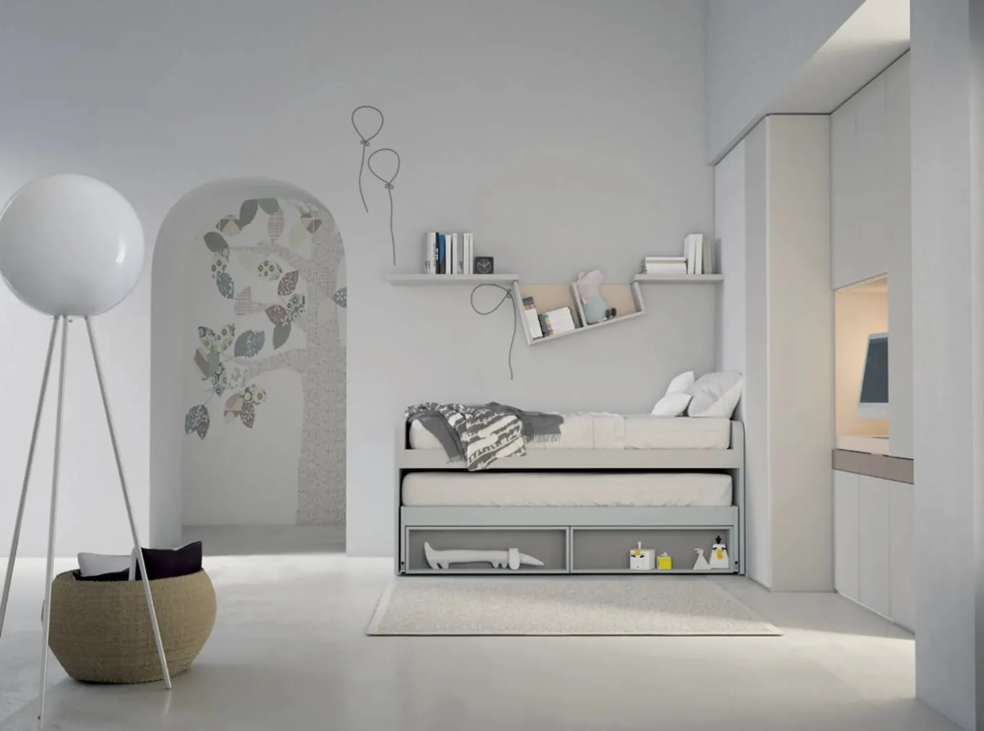 Nel nostro showroom ti seguiamo dalla scelta dell'arredamento per la camera alla progettazione del luogo nel quale i tuoi bimbi cresceranno, divertendosi e sognando. Le Camerette dei nostri figli sono lo spazio dove cresceranno divertendosi e sognando, perciò è imprescindibile che lo spazio sia ben organizzato. Con la Cameretta C14 Salvaspazio di Dielle in laccato opaco ti garantirai un perfetto connubio di ergonomia e sicurezza, ideale per la stanza dei tuoi figli. I nostri bambini passano molto tempo delle loro giornate nelle loro camere da letto: rendile adatte per fare i compiti, divertirsi e dormire ogni giorno.