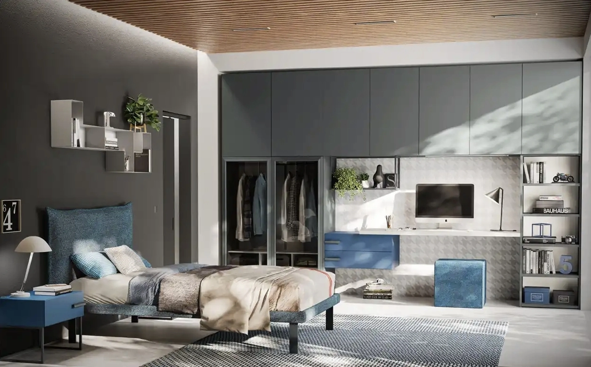 Cromie di tendenza e soluzioni progettuali d'eccellenza caratterizzano le più belle proposte del noto e conosciuto brand che presentiamo in negozio. Con una composizione arredativa Moretti Compact Camerette, potrai completare con funzionalità e design lo spazio dove i tuoi figli passano gli anni più importanti della vita. Moretti Compact Camerette soddisfa lo stile dei giovani e i desideri degli adulti con le sue Camerette design a ponte, ideali per necessità di ogni tipo. La Cameretta Y108 di Moretti Compact Camerette in laccato opaco è un ambiente complesso da progettare con attenzione, coniugando vari accessori su misura.