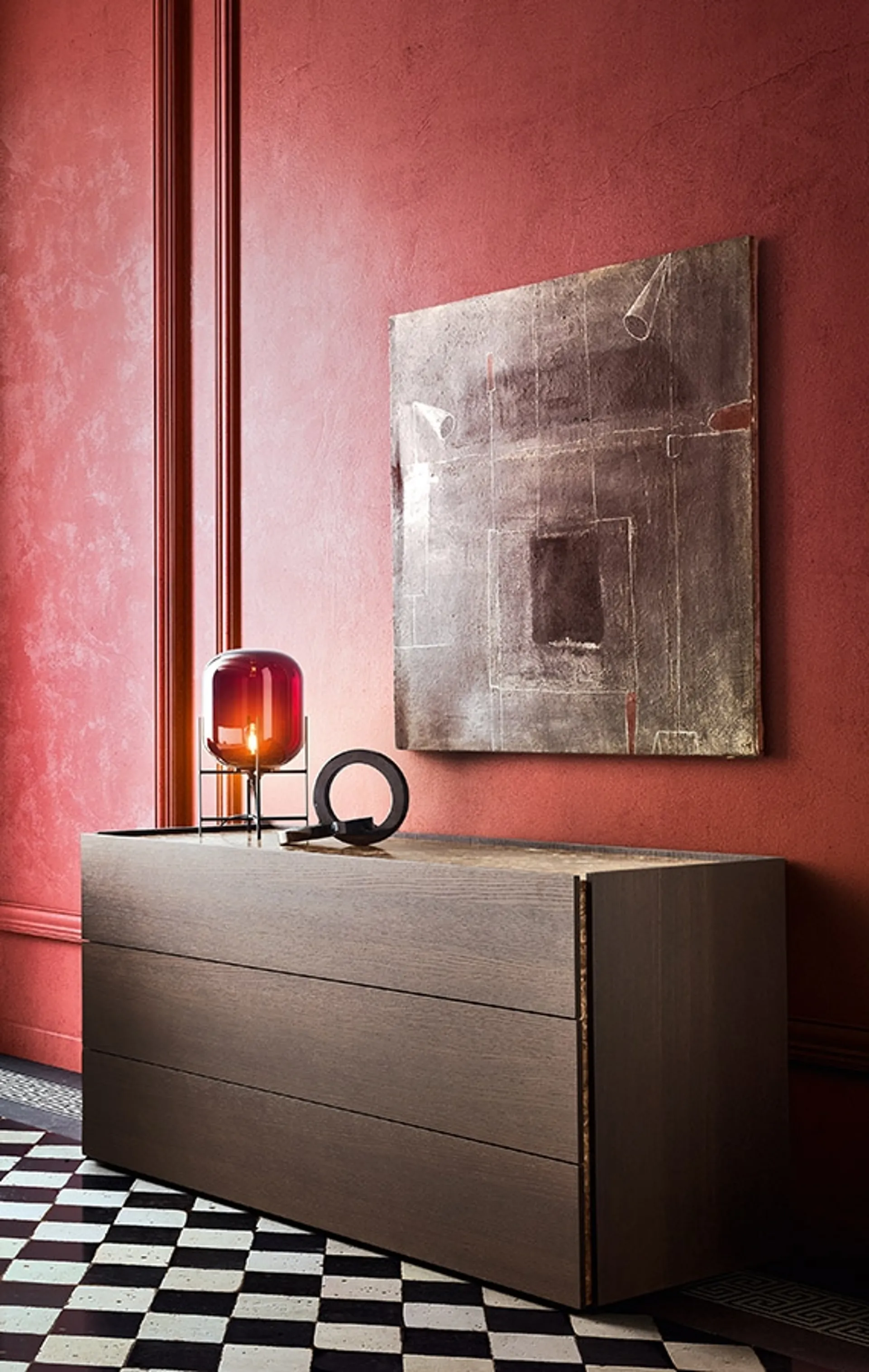 Il Atlante Comò di Pianca si configura come un elemento distintivo all'interno di una linea di arredi contenitori. La sua concezione è incentrata su un design minimalista e lineare, progettato per massimizzare sia la flessibilità d'uso che l'efficienza funzionale. I cassetti, armoniosamente integrati con la struttura, sono caratterizzati da frontali che ne riprendono la tonalità e si aprono attraverso una discreta gola laterale incassata. La possibilità di personalizzare i profili verticali e il piano superiore con finiture diverse – sia in contrasto che in piena coerenza materica e cromatica – permette di creare innumerevoli configurazioni estetiche. Questa flessibilità rende il Atlante Comò adatto a contesti d'arredo eterogenei, dal classico al più contemporaneo, grazie all'impiego di materiali pregiati come legno, vetro, marmo, terrazzo e superfici laccate o metallizzate. La meticolosa selezione dei materiali e l'ingegneria costruttiva avanzata assicurano una durabilità eccezionale e un valore intrinseco superiore nel tempo.