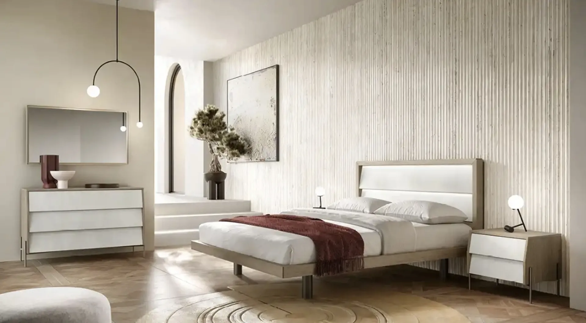Scopri l'esclusivo Gruppo Notte Aurora di Moretti Compact Giorno Notte, ora disponibile presso il nostro showroom Battaglia Arredamenti S.r.l. a Saponara. Questo programma presenta pezzi unici che catturano lo sguardo, grazie a dettagli finemente lavorati come linee, gole e tagli obliqui che creano un dinamismo visivo coinvolgente. Le soluzioni proposte garantiscono un design fluido, rilassante e un tocco glamour per la tua camera da letto. Il Gruppo Aurora si distingue per la sua estetica essenziale, prestazioni elevate e un impegno verso la sostenibilità. Siamo il punto di riferimento per l'arredamento di qualità a Saponara, offrendo un design innovativo e soluzioni personalizzate per ogni esigenza. Venite a trovarci per toccare con mano la qualità e l'eleganza.