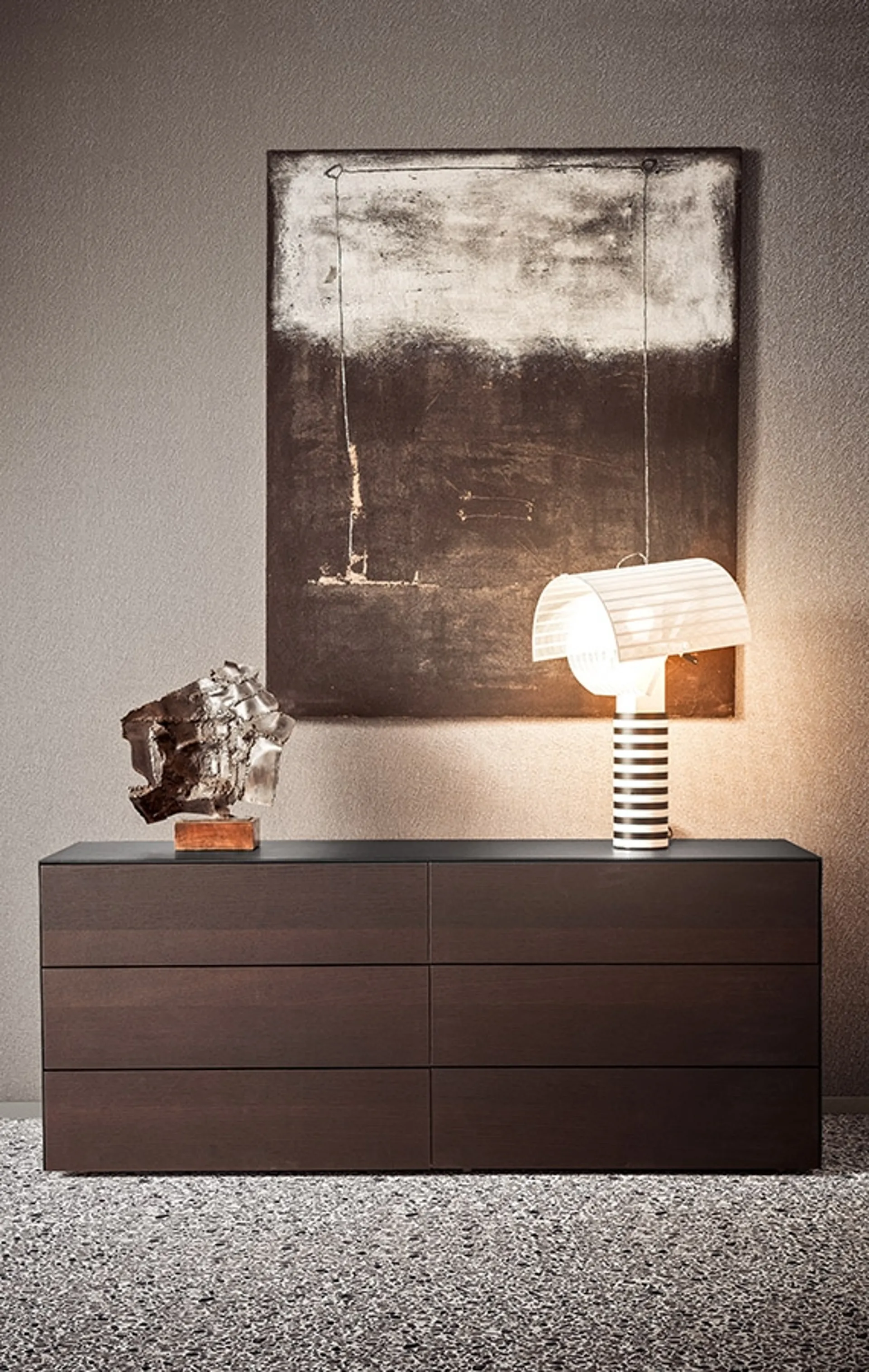 Il comò Norma, firmato Pianca, si distingue per il suo profilo pulito e un'estetica bilanciata, enfatizzata dalla selezione di materiali di pregio che ne definiscono l'identità. La struttura è disponibile in raffinate essenze di legno o con finitura laccata, mentre i frontali offrono versatilità con opzioni in legno, vetro laccato o un elegante rivestimento in cuoio. Questo elemento d'arredo è concepito per adattarsi a diverse esigenze spaziali, essendo proposto in tre varianti di larghezza per una perfetta integrazione nell'ambiente. Per approfondire le specifiche tecniche dei materiali e le opzioni di finitura, invitiamo a consultare la documentazione dettagliata del prodotto.