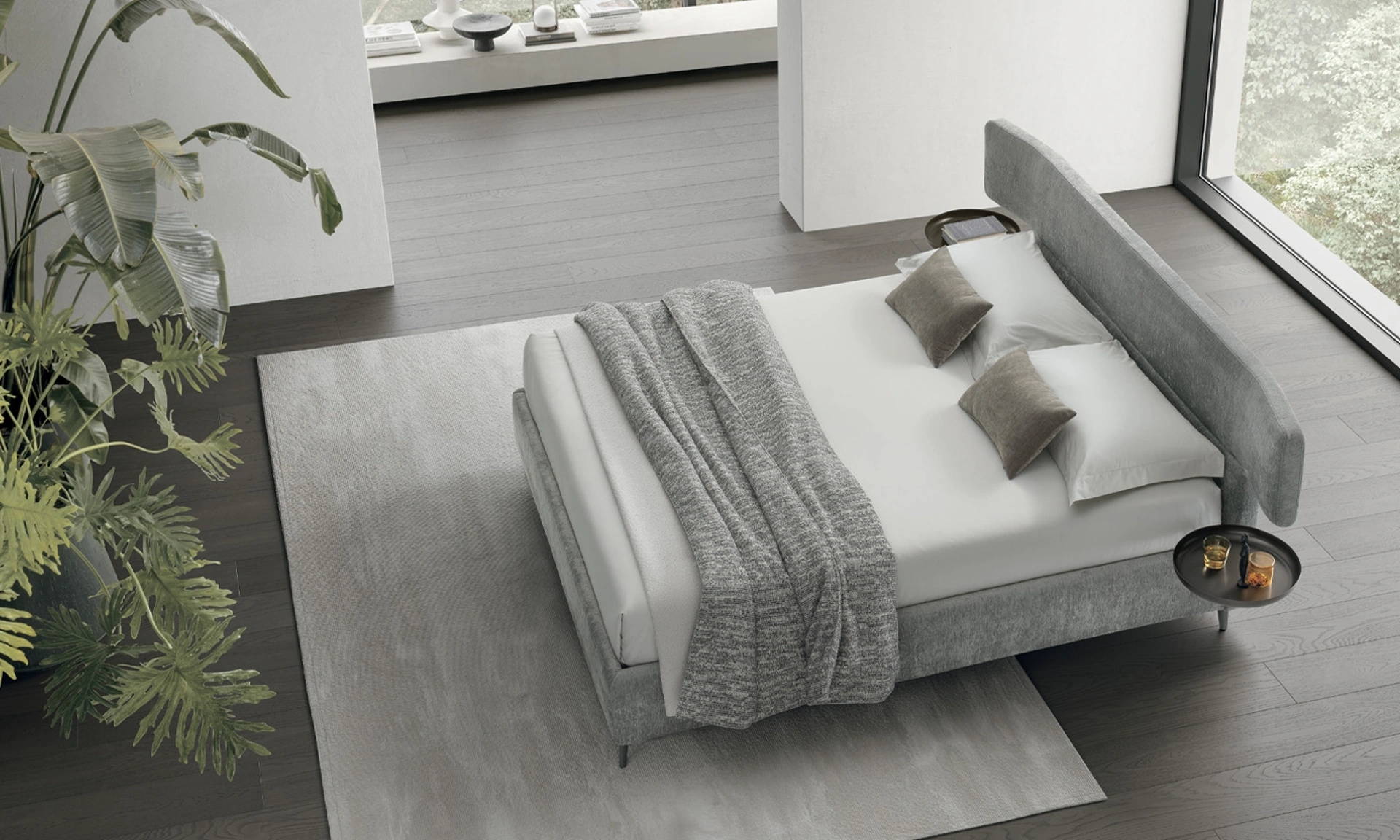 Il modello Bergè di V&Nice è un esempio di design avanzato, caratterizzato da una testata ergonomica che si incurva delicatamente per massimizzare il comfort e l'integrazione estetica. La sua progettazione include soluzioni intelligenti come i tavolini circolari in metallo, pensati per ottimizzare lo spazio e sostituire i tradizionali comodini. La versatilità del letto è evidente nelle opzioni di giroletto, disponibili in altezze di 14 cm per un profilo minimalista o 25 cm per un impatto visivo più robusto. È inoltre possibile optare per l'integrazione di un pratico box contenitore, ampliando le funzionalità di stoccaggio. La selezione dei materiali e le tecniche costruttive impiegate garantiscono una durabilità eccezionale e un'estetica raffinata nel tempo.