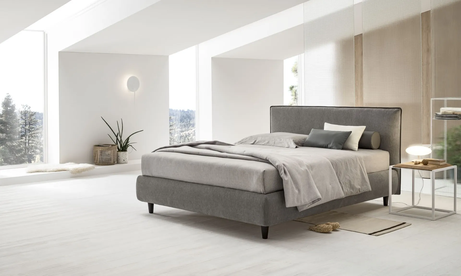 Il letto Dalia di V&Nice, un'eccellenza nel design per la zona notte, è caratterizzato da una testiera imbottita di notevole spessore, concepita per massimizzare il comfort e il benessere. La sua estetica minimalista e raffinata è impreziosita da un bordino perimetrale che può essere personalizzato con finiture a contrasto, offrendo un tocco di unicità. La struttura è progettata per integrare, a scelta, un pratico vano contenitore, garantendo un'ottimizzazione degli spazi senza compromettere l'eleganza. Questo modello incarna la versatilità progettuale e l'attenzione ai dettagli costruttivi, tipici delle produzioni di alta gamma.
