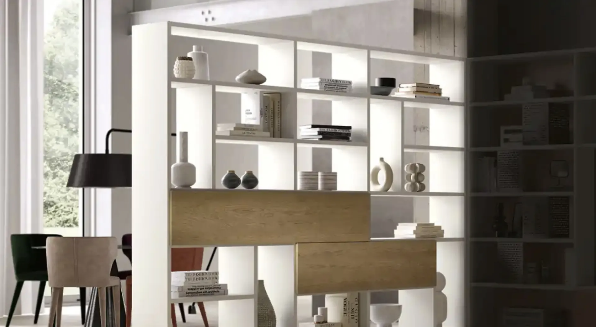 In negozio ti attendono i più preparati consulenti, pronti a farti vedere mobili ed elementi accessori belli e pratici per la tua casa. Scopri presso i migliori rivenditori di mobili le più originali Librerie divisorie, tra cui anche quelle moderne in melaminico ideali per valorizzare soggiorni di ogni genere. Mantenere il living in ordine non è il suo unico compito: con questa libreria potrai progettare il concept d'arredo che hai sempre desiderato usufruendo al meglio di ogni spazio. Il modello presente in foto è la Libreria divisoria Kosmos KL211B di Moretti Compact Giorno Notte, uno dei mobili soggiorno realizzabili su misura per te del rinomato marchio di Arredamento Casa. Decorare il living non è difficile se si opta per l'adeguata libreria per allestire il proprio spazio, l'importante è che sia capiente e gradevole.