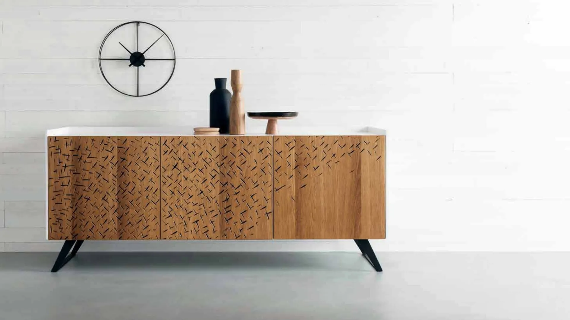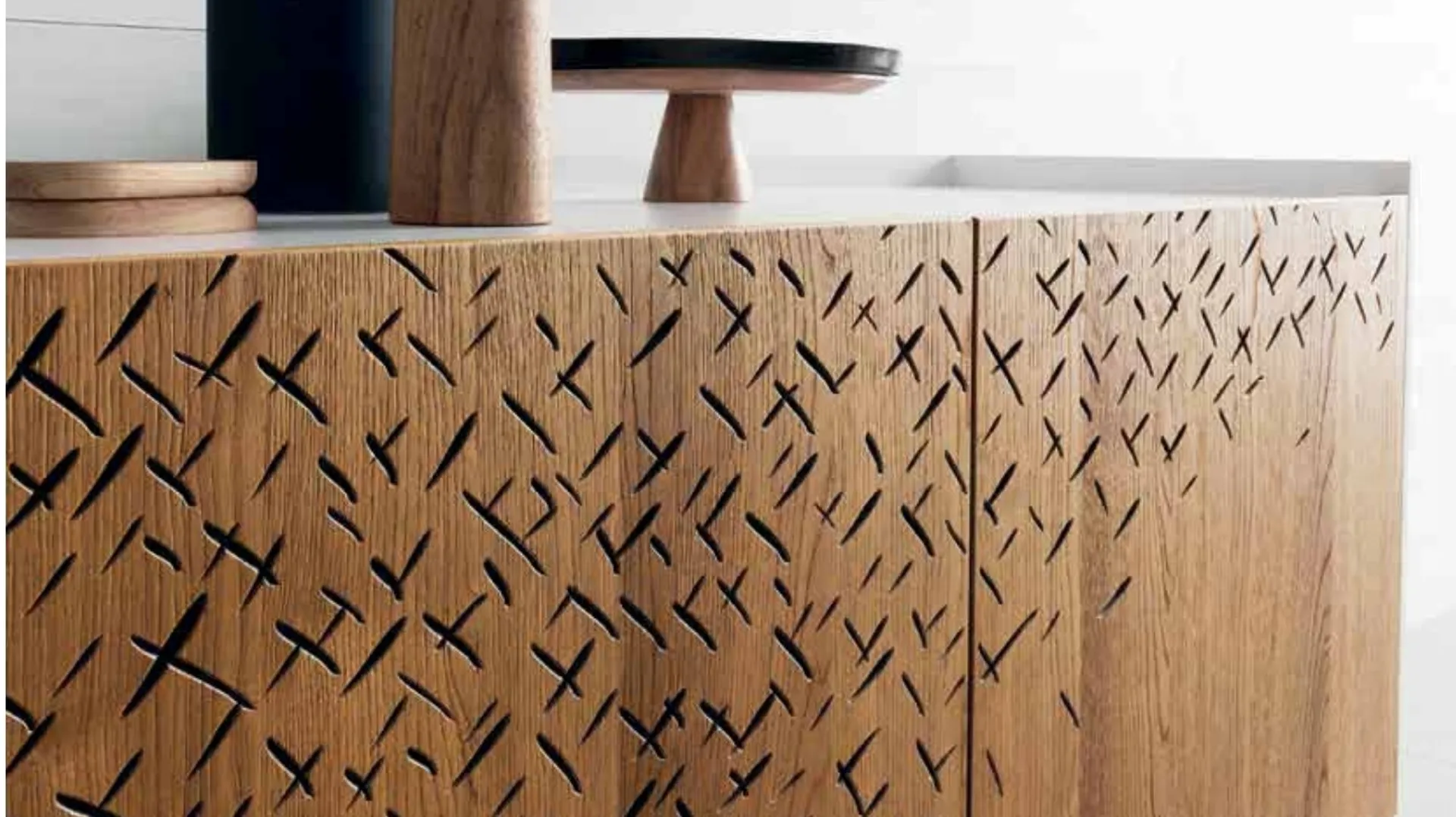 | Materiale: | Scocca: materico, Scocca: legno di rovere, Ante: rovere con incisione carving |