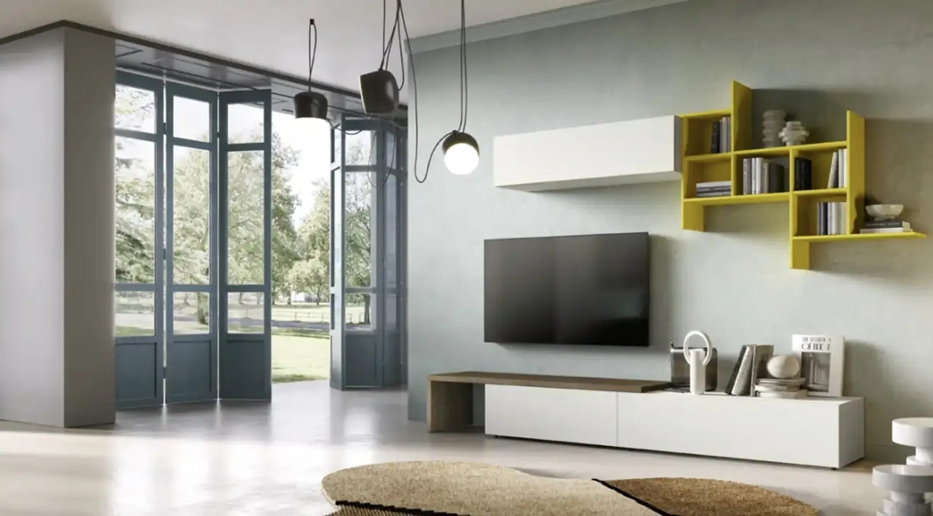 I mobili soggiorno in melaminico dalle linee moderne come il modello nell'immagine sono veramente versatili e capaci di arredare la zona giorno usufruendo al meglio di ogni angolo. La Parete Attrezzata Kosmos KF121 di Moretti Compact Giorno Notte nell'immagine è una tra le più originali soluzioni d’arredo in commercio: componibilità personalizzabile e le differenti opportunità di progettazione la rendono bella e funzionale. Lasciati stuzzicare da un ricco catalogo di mobili per la zona giorno e potrai trovare la parete attrezzata che fa per te. Moretti Compact Giorno Notte offre a catalogo inediti modelli di mobili soggiorno, diversi per stile e conformazioni, texture e elementi: scopri nel nostro punto vendita l'Arredamento Casa dei migliori brand.