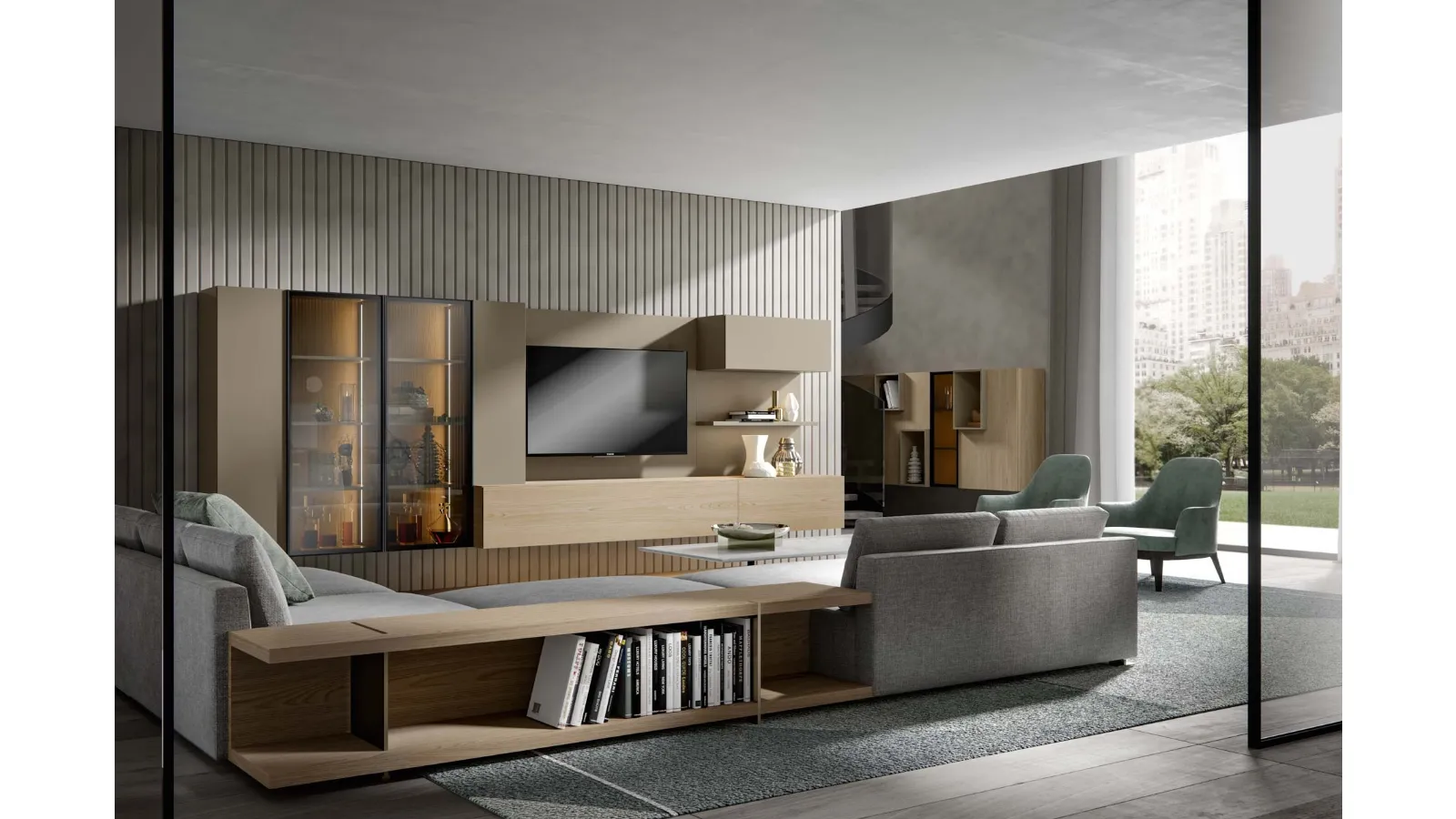 La Parete Attrezzata Modulo 03 di Veneran nell'immagine possiede massima componibilità e diverse possibilità di personalizzazione: scopri la parete attrezzata qui disponibile e contattaci per maggiori informazioni e preventivi. A muro o a centro stanza per ottimizzare un open space, le più originali composizioni d’arredo in commercio arredano il soggiorno sfruttando bene lo spazio disponibile. Impreziosisci i tuoi interni con le Pareti Attrezzate moderne di Veneran: in negozio troverai mobili ed elementi accessori di design, in materiali durevoli e dei migliori brand. Per soddisfare le eterogenee problematiche abitative di ciascuno, marchio mette a disposizione dei suoi clienti una ricca gamma Pareti Attrezzate moderne particolarmente funzionali e connotate da un'estetica raffinata.