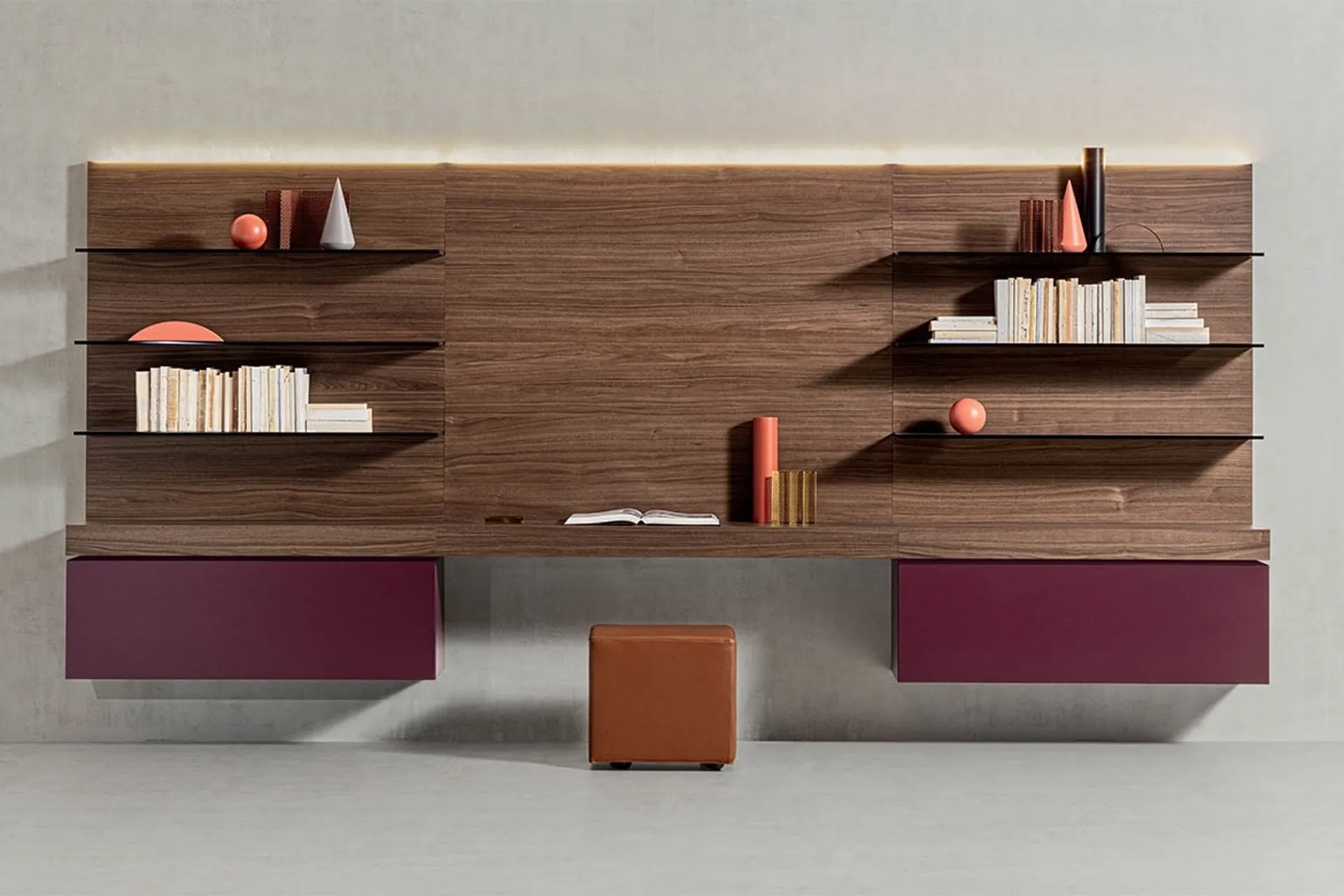 La Spazioteca Pianca, un sistema modulare all'avanguardia, offre soluzioni altamente flessibili per l'arredamento di pareti attrezzate. Realizzata con la pregiata finitura in legno Canaletto, questa configurazione permette una gestione ottimale degli spazi attraverso un'armoniosa alternanza di elementi pieni e vuoti. È stata concepita per ospitare libri, oggetti decorativi e per integrare efficacemente zone dedicate all'home office. Il design si distingue per la sua dinamicità e leggerezza strutturale, con fianchi, ripiani, schiene e divisori caratterizzati da un passo di soli 1 cm. Questa precisione costruttiva garantisce una personalizzazione estrema e un'estetica pulita, priva di fori o elementi di ferramenta a vista. La meticolosa progettazione assicura un'integrazione fluida in ogni ambiente, valorizzando l'estetica e la durabilità dei componenti.