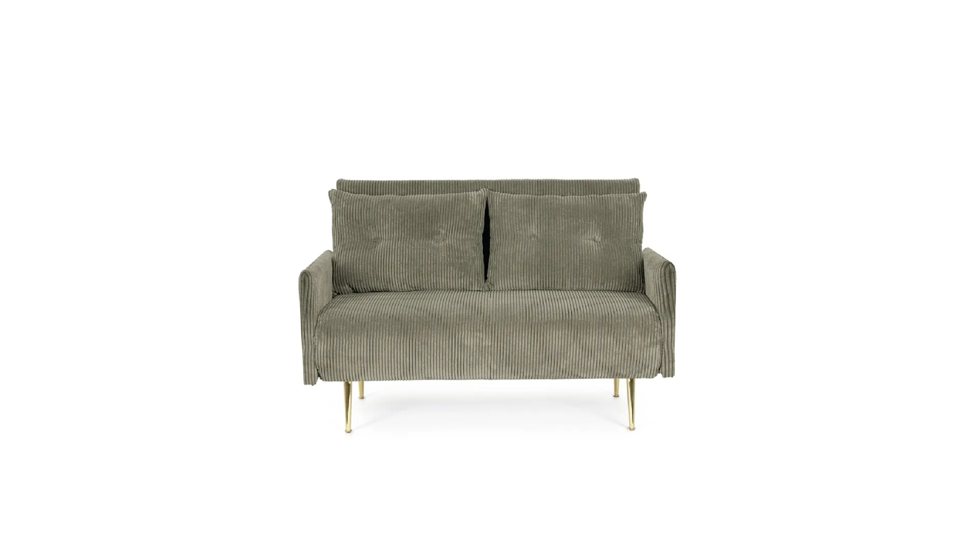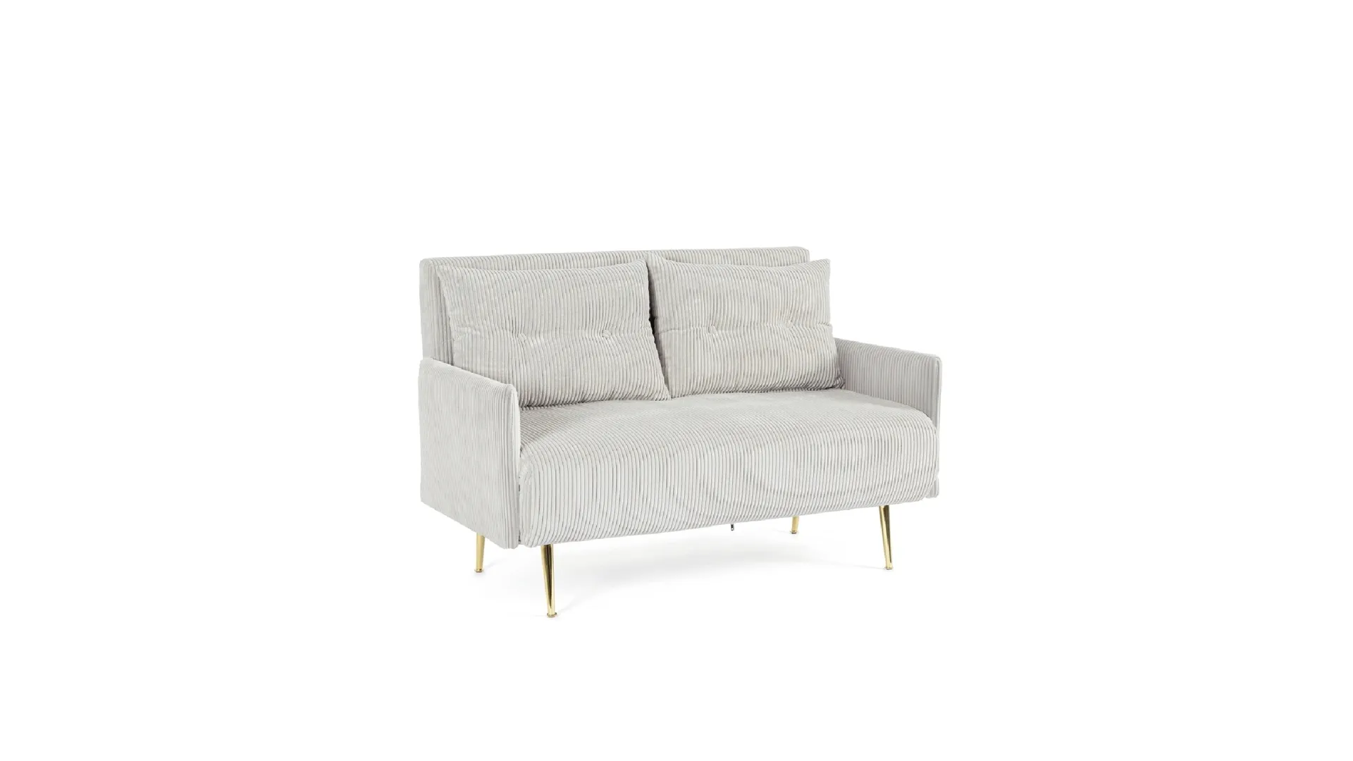 Scopri l'esclusivo divano letto Chicago di Bizzotto, ora disponibile per essere ammirato e acquistato presso il nostro showroom Battaglia Arredamenti S.r.l. a Saponara. Siamo il tuo punto di riferimento per soluzioni d'arredo di qualità nella provincia di Messina, offrendo consulenza esperta e un vasto catalogo. Questo elegante modello a 2 posti, dal distintivo stile vintage, si presenta con un raffinato rivestimento in poliestere a costine effetto velluto di colore grigio chiaro. La sua struttura robusta, realizzata con legno di eucalipto e acciaio, è completata da gambe cromate color oro che aggiungono un tocco di classe. L'imbottitura in schiuma poliuretanica garantisce un comfort elevato, sia in configurazione divano (L132 x P78 x A87 cm) sia come pratico letto (L118 x P191 x A31 cm). Ti invitiamo a visitare il nostro showroom per toccare con mano la qualità e la versatilità di questo prodotto, e per ricevere un preventivo personalizzato.