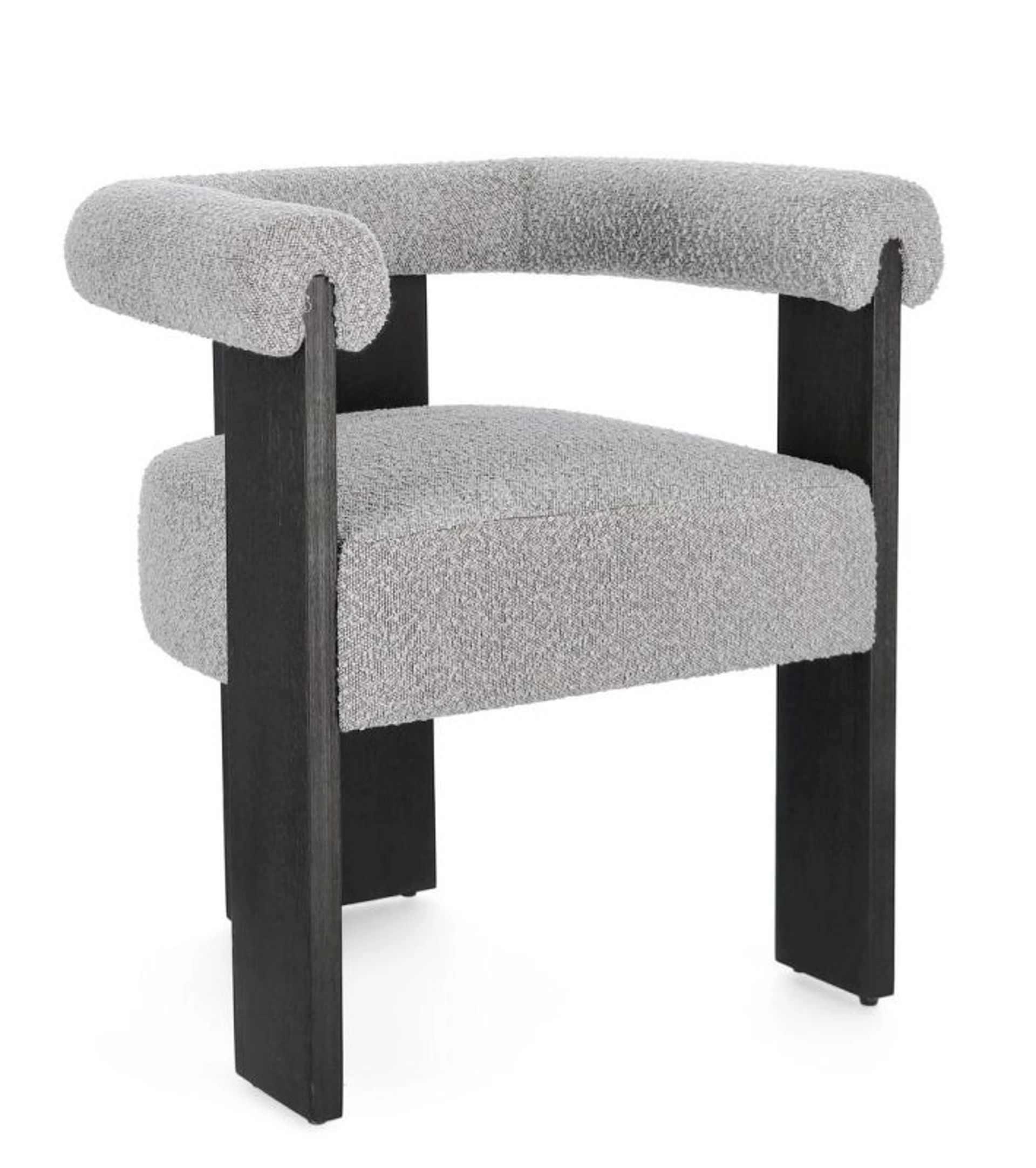 | Materiali: | Struttura in legno di pino e compensato, gambe in rubberwood, rivestimento in poliestere effetto bouclé, imbottitura in schiuma poliuretanica (densità 18/30 kg/m3). |