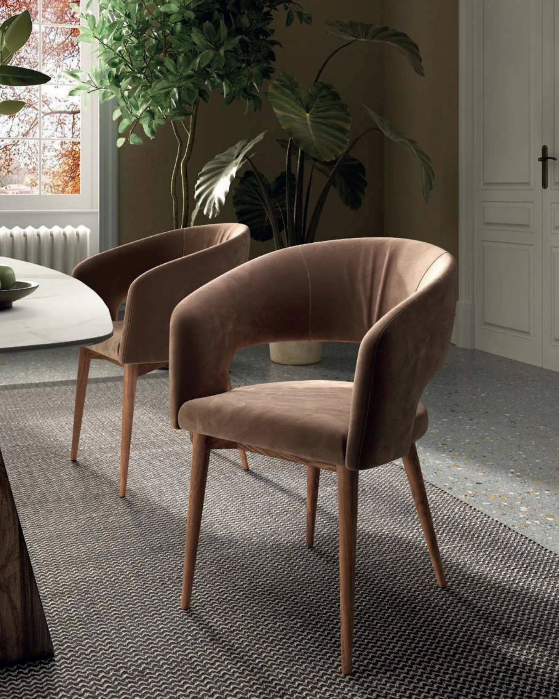 Nel living o nella cucina, le Sedie sono pezzi di arredo essenziali: sottolineano il mood dell'ambiente e rispondono a una funzione imprescindibile. Una grande varietà di sedute fisse da pranzo ti attende nel nostro showroom: contattaci per informazioni e preventivi e ottimizza i tuoi interni con la qualità che solo Di Lazzaro sa garantirti per mobili ed elementi accessori. Se desideri una sedia in pelle per arricchire l’ambiente di casa, ottieni informazioni sul modello nella fotografia e trova un tavolo abbinato. Il living e la cucina non sono davvero piacevoli e confortevoli se arredati con le Sedie sbagliate, ecco perché devono essere abbinate ai restanti pezzi d'arredo e alle dimensioni della stanza. Sedia Giulia de Di Lazzaro: questo modello andrà ad impreziosire spazi di ogni tipo, in modo particolare atmosfere moderne.