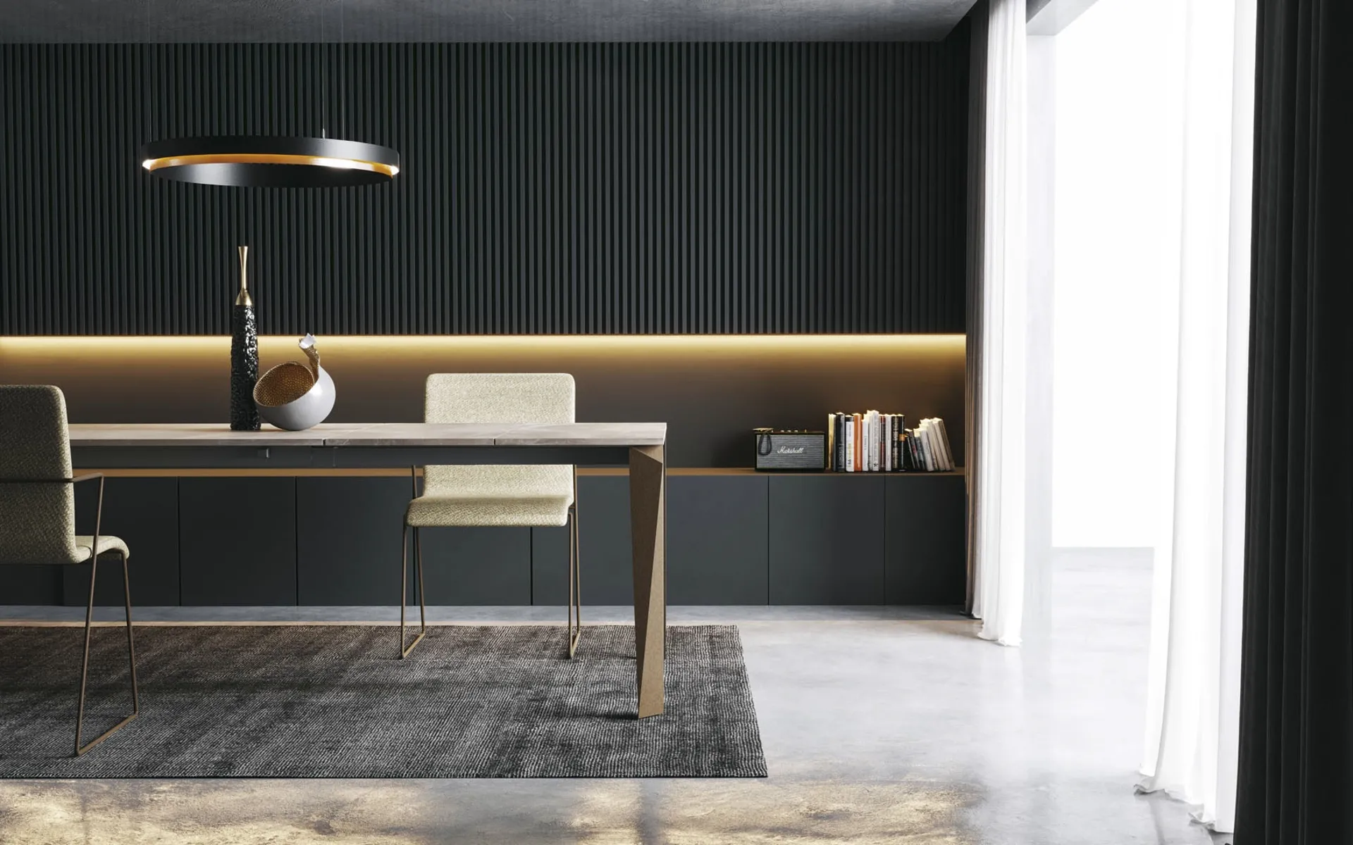| Materiale: | Metallo verniciato (basamento), Ceramica (piano), Melaminico (piano e allunghe), Laminato HPL (piano e allunghe), Vetro dekor (piano) |