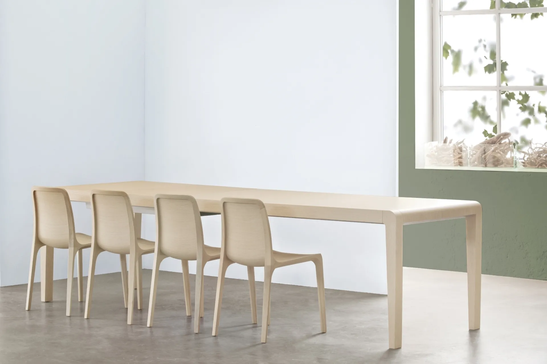 Il tavolo allungabile Exteso TE2, firmato Pedrali, incarna una fusione magistrale tra l'integrità dei materiali e una concezione progettuale leggera e raffinata. Questo elemento d'arredo, ideale per ambienti moderni, si distingue per la sua struttura robusta: gambe e piano sono finemente impiallacciati in rovere, garantendo durabilità e un'estetica naturale. Il cuore della sua versatilità risiede nel meccanismo di estensione, ingegnosamente celato, che impiega guide scorrevoli in alluminio pressofuso per assicurare una funzionalità impeccabile e una transizione fluida tra le diverse configurazioni. Questo design intelligente permette di adattare il tavolo a molteplici esigenze spaziali, senza compromettere l'eleganza. Per un approfondimento sulle specifiche tecniche e le opzioni di finitura disponibili, vi invitiamo a consultare la documentazione tecnica del prodotto.