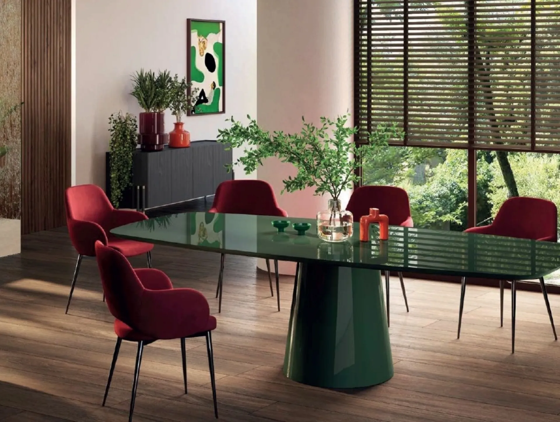 Ideali per dare vita a degli accostamenti unici con sedie e complementi moderni, i Tavoli fissi della firma sono soluzioni tra le più originali in commercio, ideali per il living e la zona cucina. Un modello come quello nella fotografia, in abbinamento alle giuste sedie, saprà arricchire lo stile delle stanze domestiche dedicate per eccellenza alla socializzazione. Tavolo rotondo Griffe laccato de Di Lazzaro: realizzato in materiali di qualità è connotato dalle forme decise del top e da un basamento ricercato ed elegante. Il noto e rinomato marchio Di Lazzaro, specialista nella realizzazione di mobili in laccato, ha scelto per la sua serie una vasta gamma di finiture, forme e cromie. Se sei alla ricerca di un tavolo da pranzo di elevata qualità, contattaci e ricevi informazioni e preventivi sul modello visibile in foto.