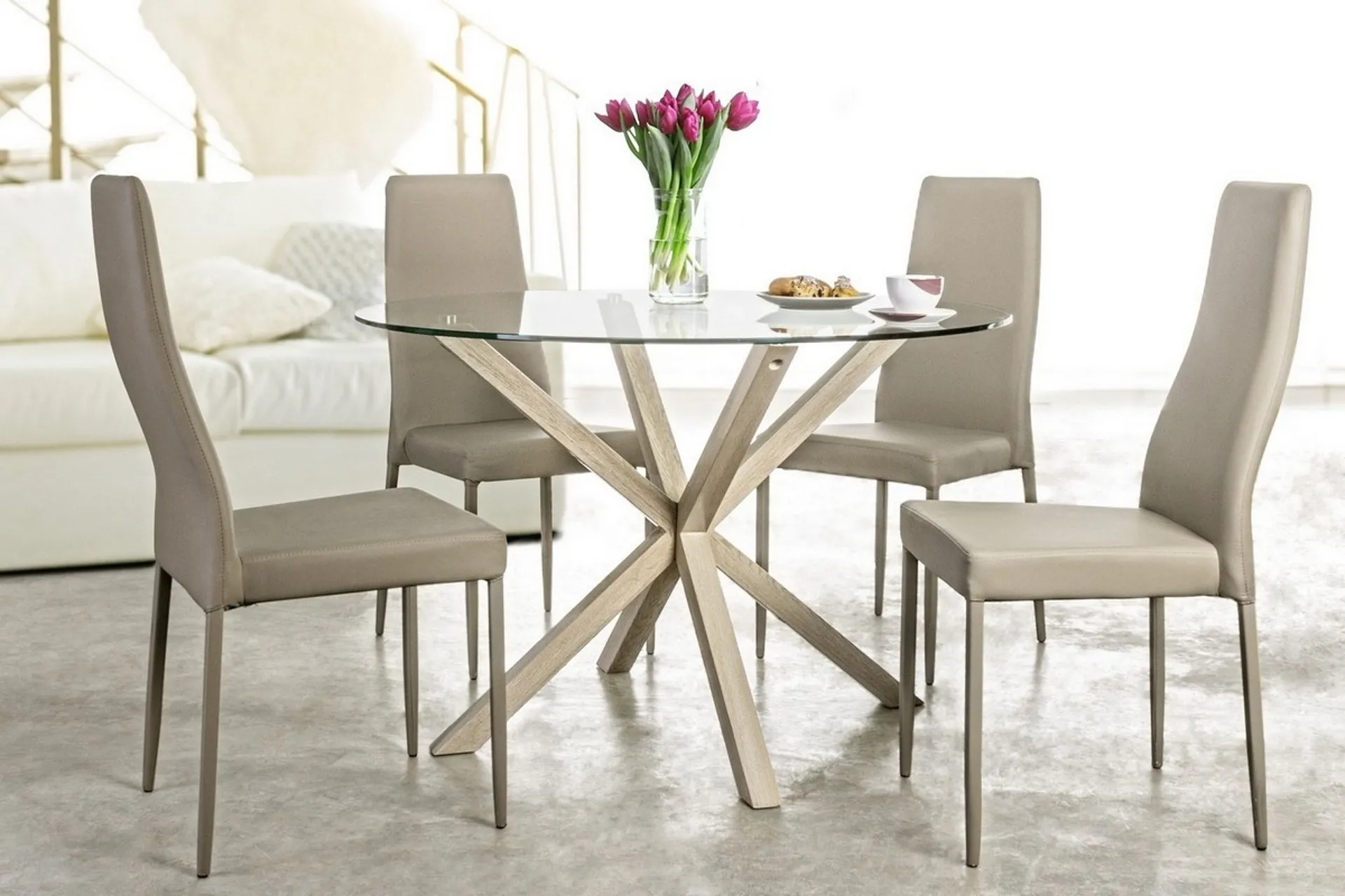 Tavolo rotondo in vetro e acciaio May di Bizzotto: realizzato in materiali pregiati è contraddistinto dalle forme decise del top e da un basamento elegante e raffinato. Ideali per dare vita a degli abbinamenti unici con sedie e complementi design, i Tavoli fissi della marca sono soluzioni tra le più esclusive in commercio, ideali per il soggiorno e la cucina. Un modello come quello nell'immagine, in abbinamento alle giuste sedie, saprà arricchire il look delle stanze di casa dedicate per eccellenza alla socializzazione. Se cerchi un tavolo da pranzo di elevata qualità, contattaci e ricevi info e preventivi sul modello presente in foto.