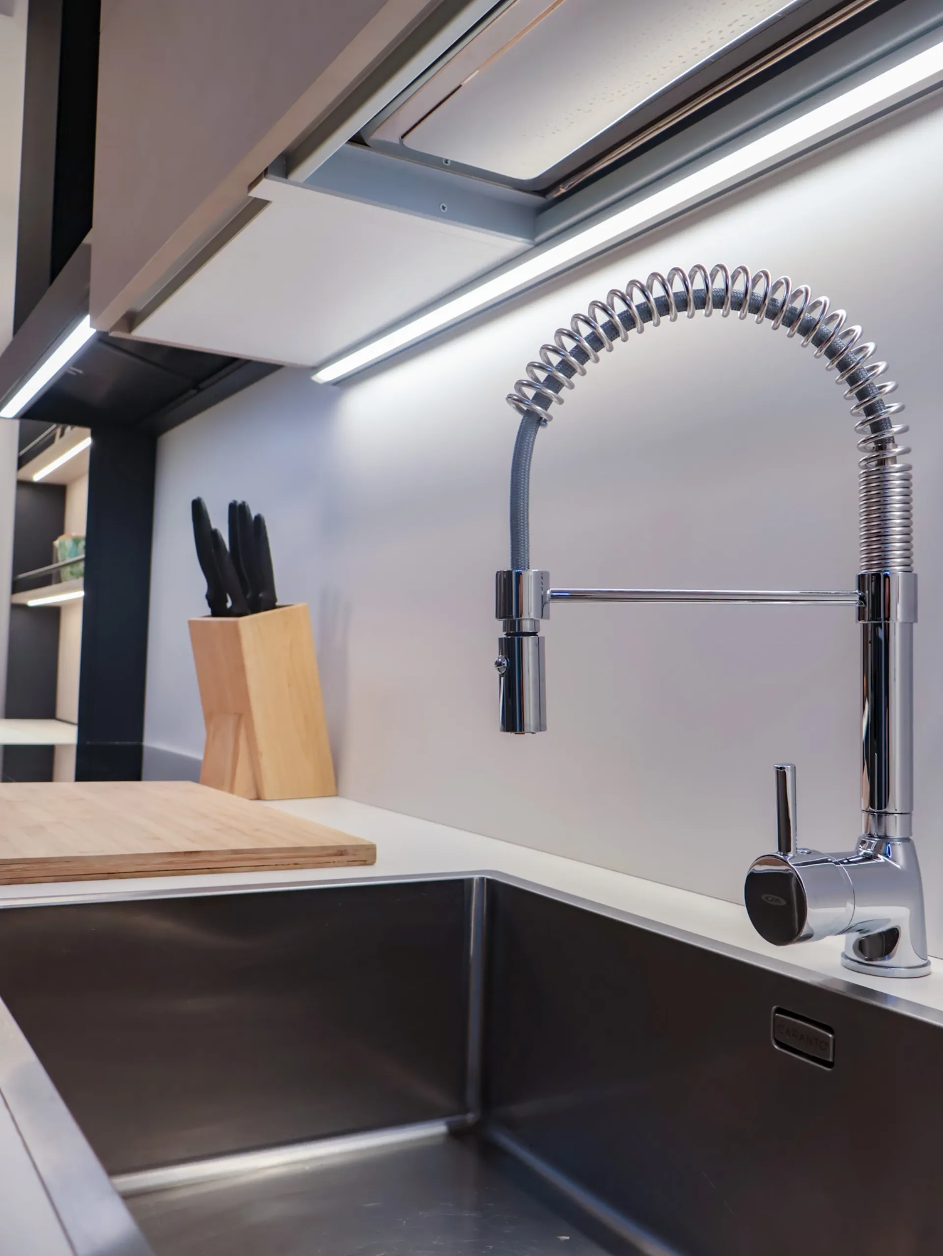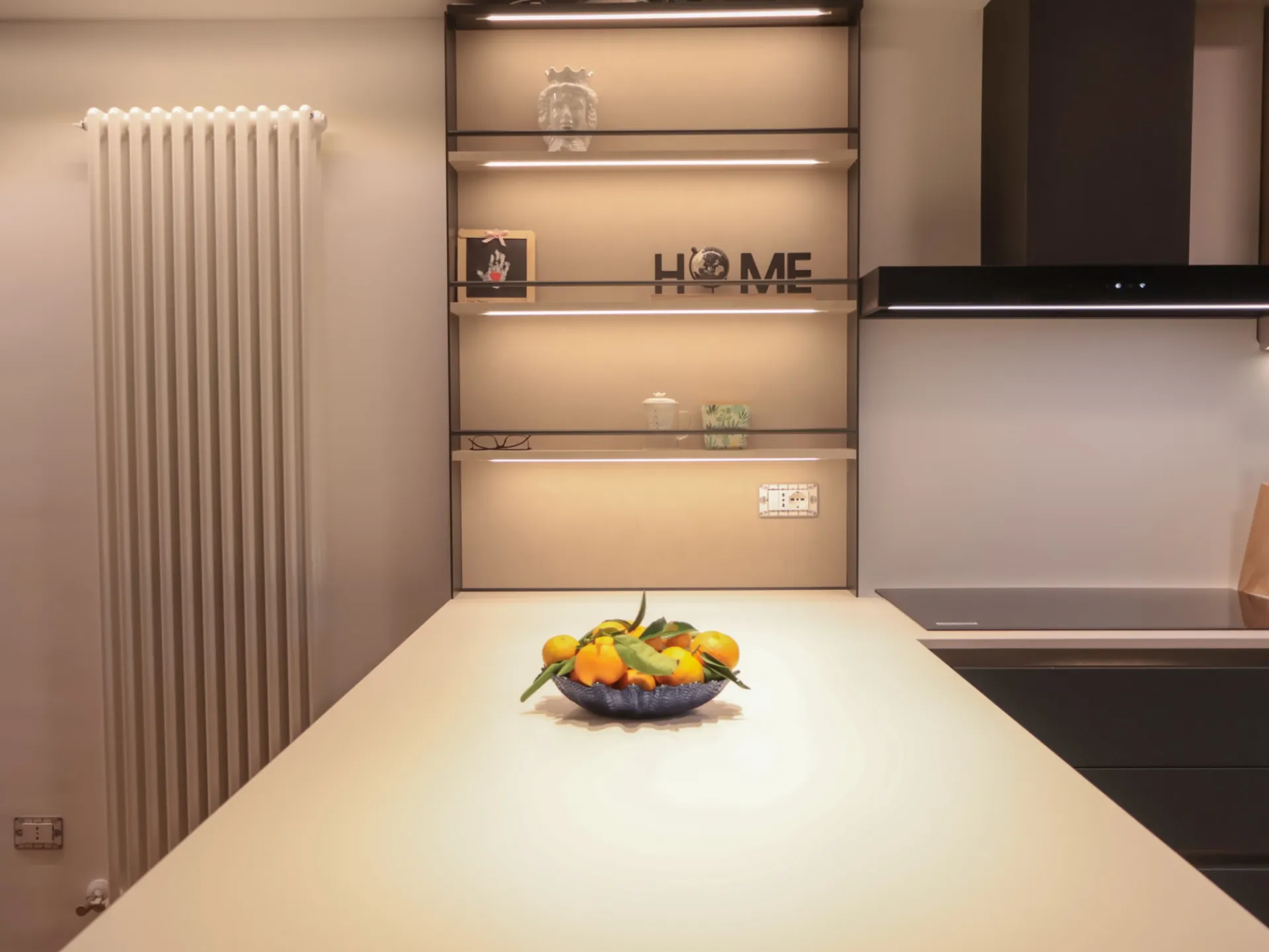 Il top in Caranto Ker Bianco Polare Naturale illumina la composizione, esaltando la pulizia delle linee e la qualità dei materiali.