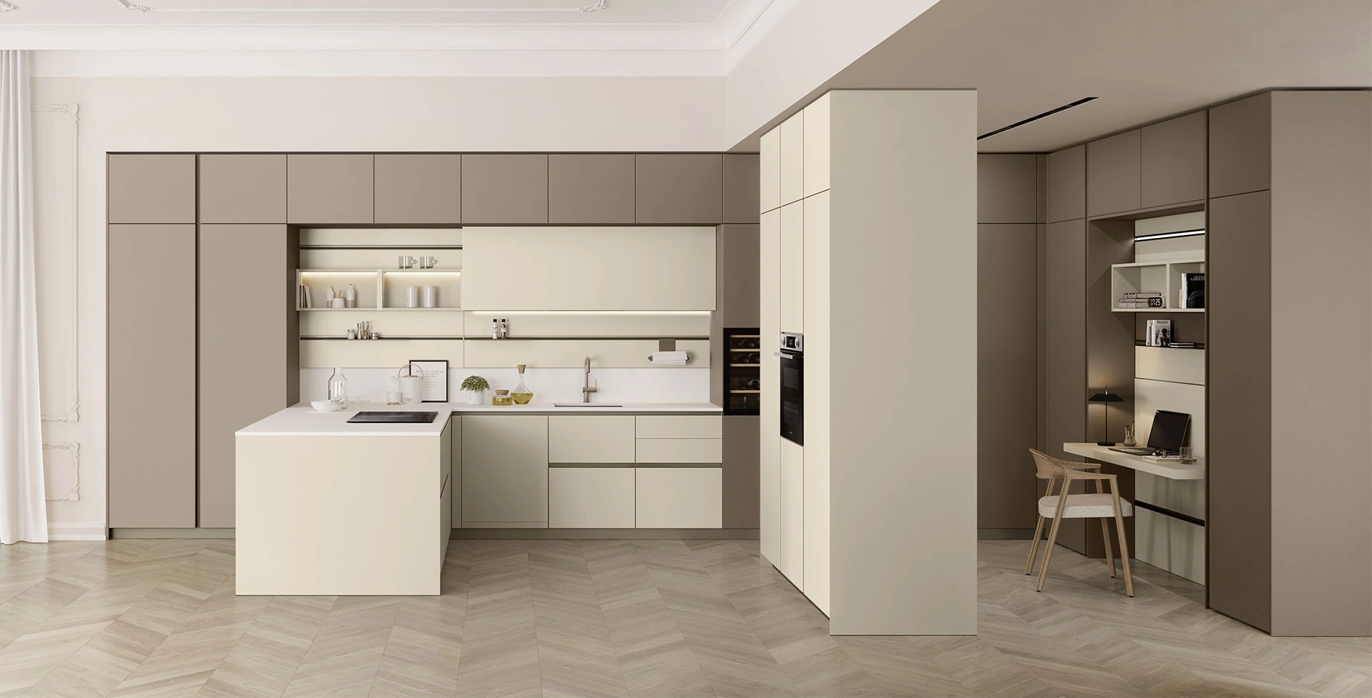 Il modello in laccato opaco nell'immagine, si può progettare in molteplici assetti, tonalità e finiture di grande valore decorativo per lasciarti arredare gli spazi con razionalità, assicurandoti la praticità e contenitività di cui hai bisogno. Scegli la cucina che fa per te tra le varie soluzioni con penisola disponibili sul mercato: potrai arredare gli spazi valorizzandoli appieno. L'acquisto di una tra le Cucine Moderne della firma Veneta Cucine assicura un’ampia progettualità e massima durevolezza: scopri di più sulla Cucina Moderna con penisola Lounge 03 di Veneta Cucine.