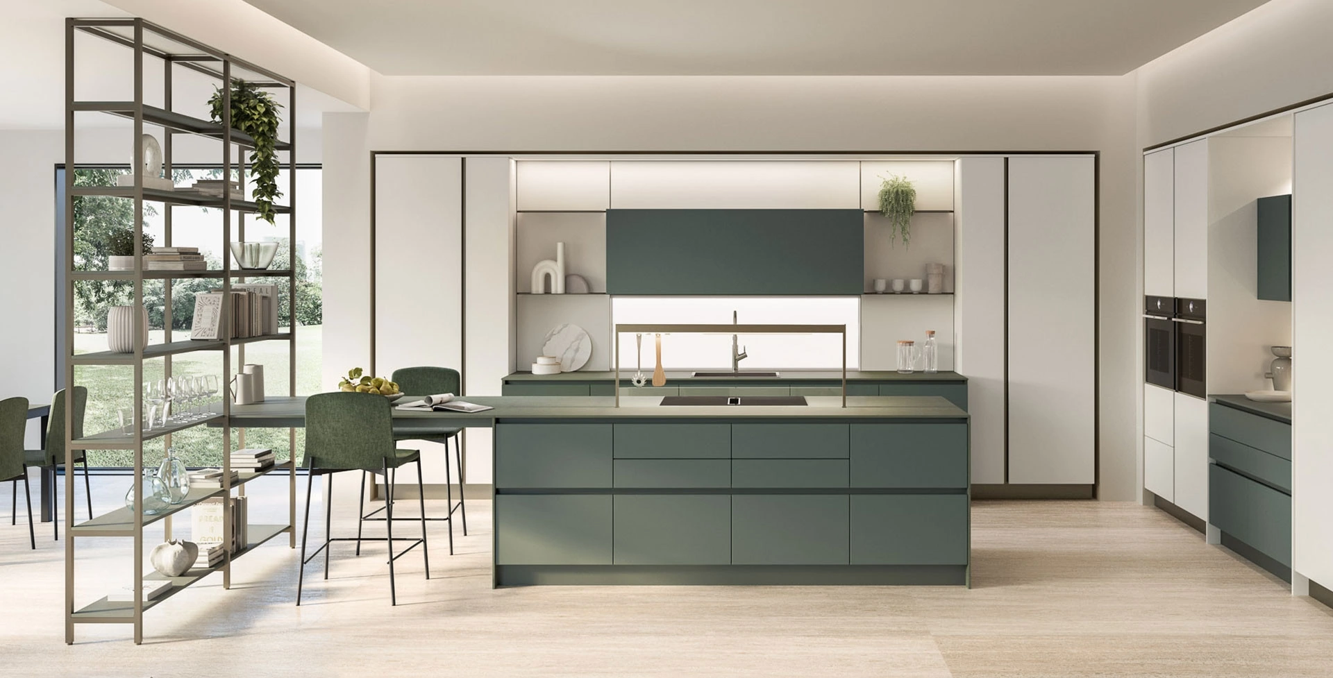 Realizza con noi un progetto su misura: per vivere in pieno comfort i tuoi interni, i nostri arredatori sono pronti a guidarti con serietà nella scelta. Se vuoi ordinare una soluzione in laccato opaco tra le diverse proposte con isola, l'alta componibilità della Cucina Moderna con isola Oyster 01 di Veneta Cucine ti darà modo di esprimere le tue necessità d’arredo. Tra i diversi modelli presenti nel catalogo Veneta Cucine, la cucina in foto rende lo spazio facilmente fruibile e danno la possibilità di vivere gli ambienti domestici appieno.