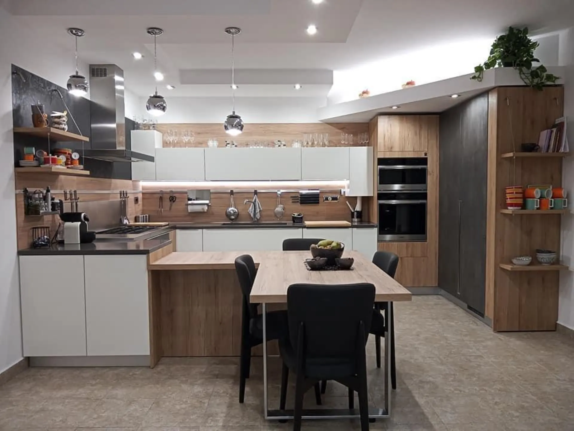 Un abbinamento che pone la cucina Evolution in giusto equilibrio tra la tradizione e la contemporaneità.