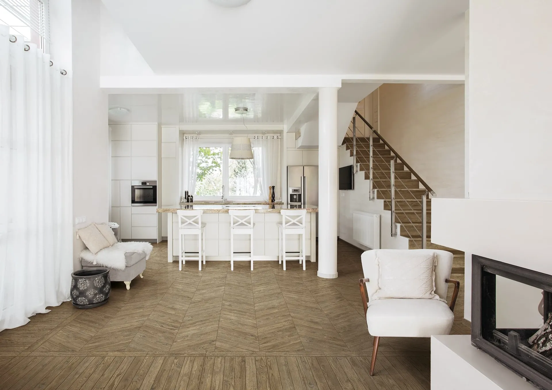 Le piastrelle della collezione Cà Foscari di La Fabbrica AVA sono realizzate in gres porcellanato di alta qualità, replicando con fedeltà le texture e le tonalità di cinque essenze lignee. Questa soluzione versatile è ottimale sia per interni che per esterni, inclusi contesti ad alto traffico commerciale, grazie alle sue eccellenti proprietà tecniche e al design raffinato. La gamma comprende formati dedicati all'uso interno (20x120 cm) e opzioni per esterni con finitura antiscivolo R11 (40x120 cm e 40x80 cm), garantendo una coerenza estetica tra spazi contigui. L'eccellenza dei materiali e la cura dei dettagli costruttivi assicurano prestazioni superiori e una durabilità eccezionale.
